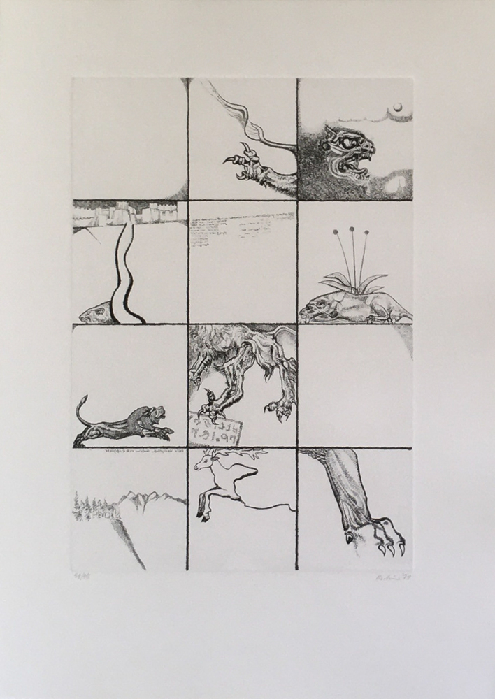 Cartella composta da n. 12 acquaforti 65x45 cm, firmate e numerate 55/115, rispettivamente: Abacuc - Capricorno Mosconi Lodovico - Acquario Margonari Renzo - Pesci Crippa Luca - Ariete Girardello Silvano - Toro Zanon Ada - Gemelli Atza Antonio - Cancro Radicioni Massimo - Leone Treccani Ernesto - Vergine Sommaruga Renzo - Bilancia Vallazza Marcus - Scorpione Tomiolo Eugenio - Sagitario Edizioni d'arte Del Torchio D'Amore (Verona).