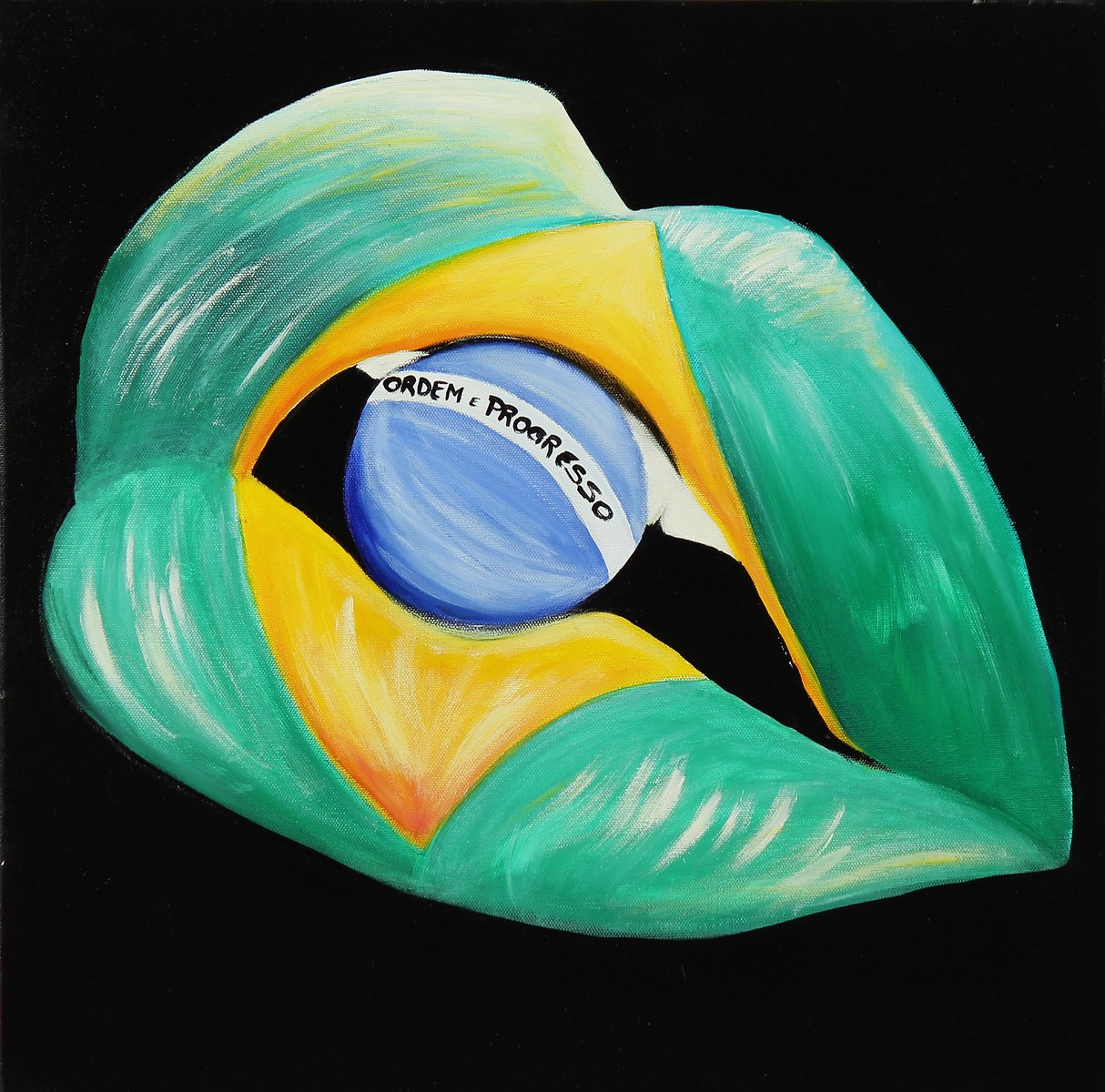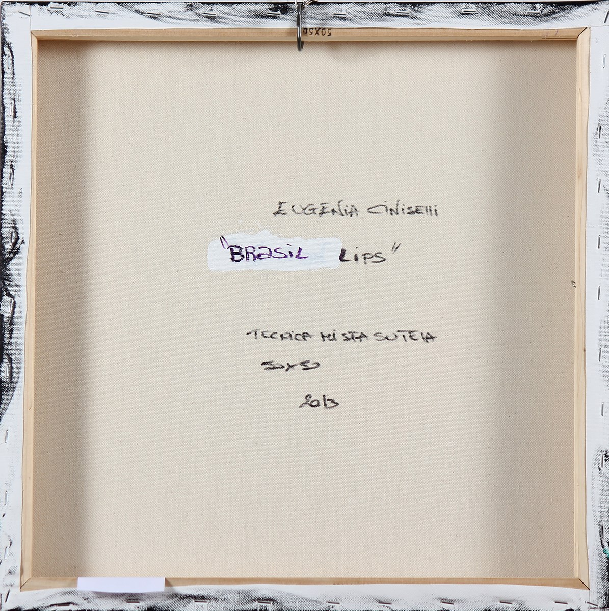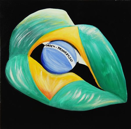 CINISELLI EUGENIA (n. 1971) Brasil lips. 2013. Tecnica mista su tela. Cm 50,00 x 50,00 x 4,00. Al retro firma, titolo e data.