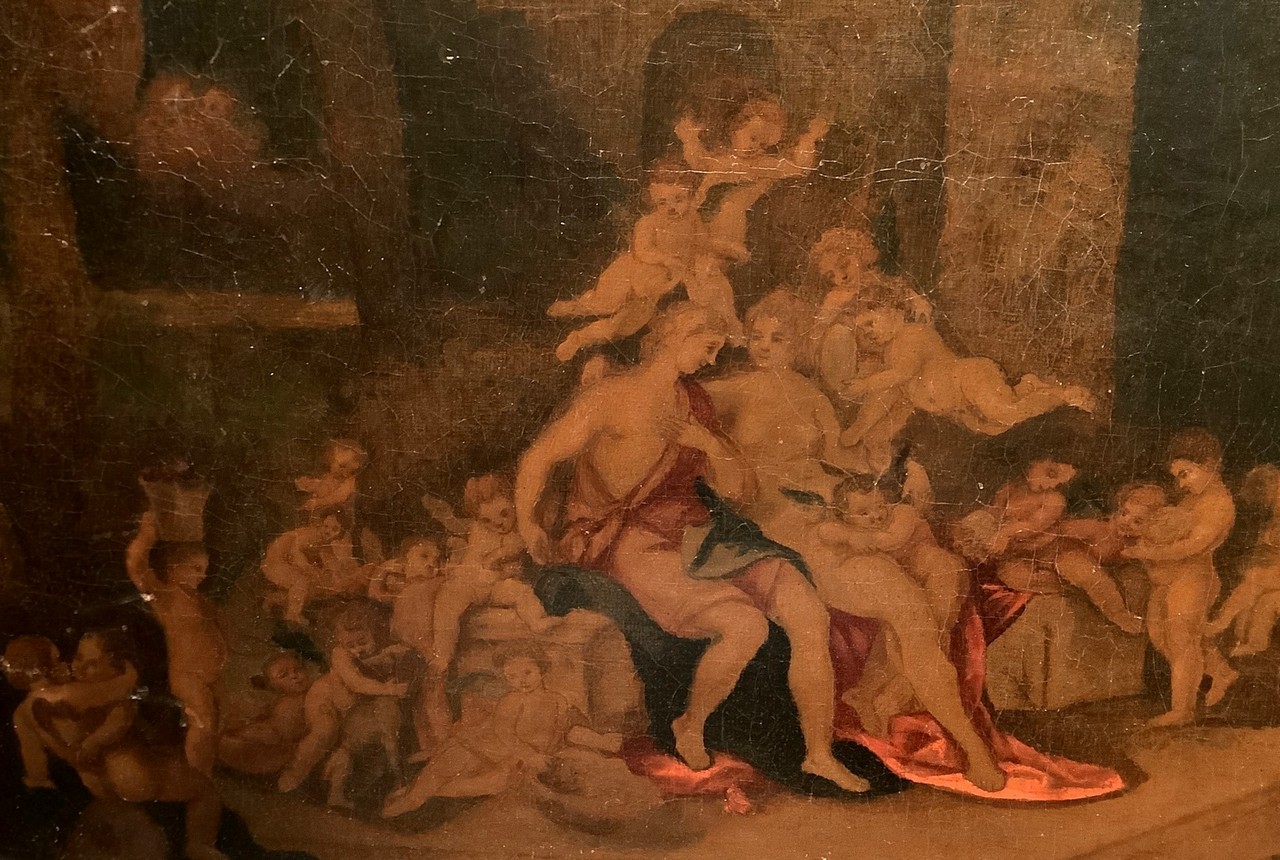Dipinto raffigurante scena di corteggiamento con Diana, ninfe e putti, Inizi 20° Secolo