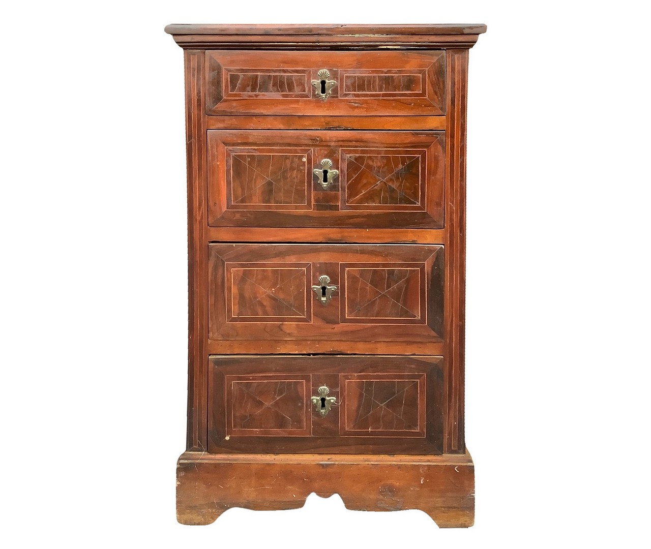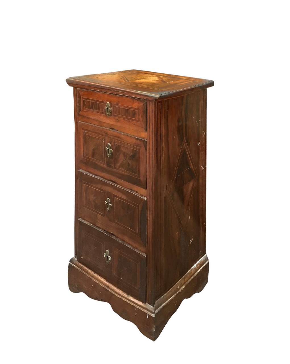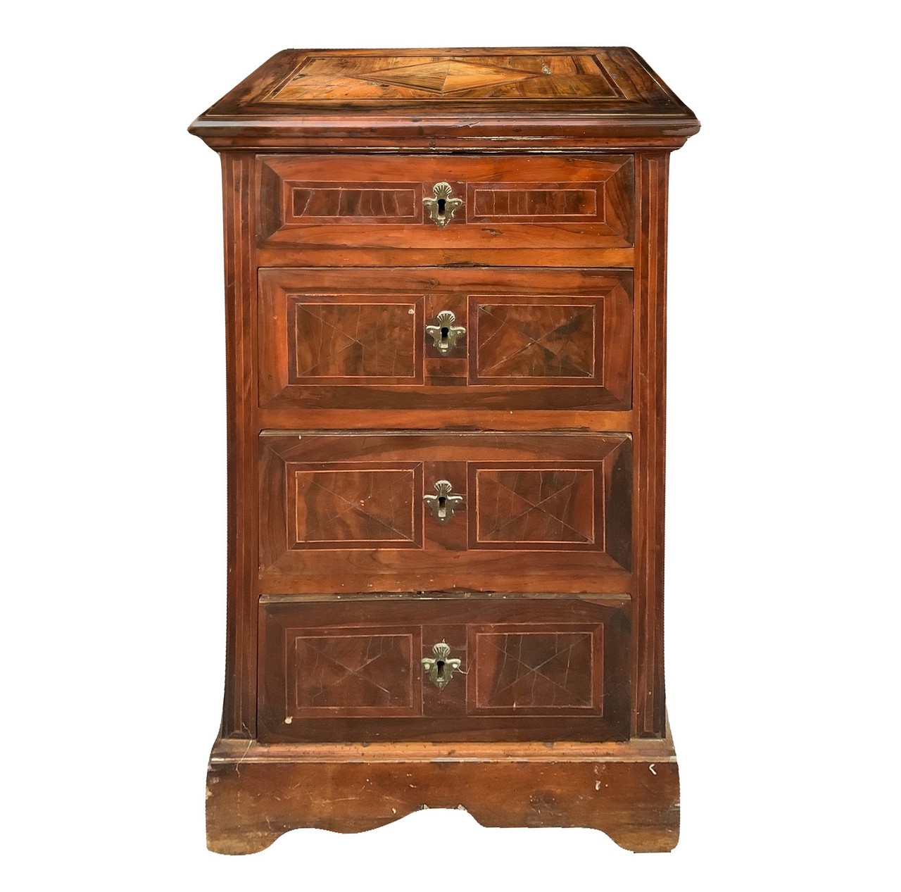 Cassettoncino a quattro cassetti in legno di noce ed intarsi a losanga , XVIII Secolo