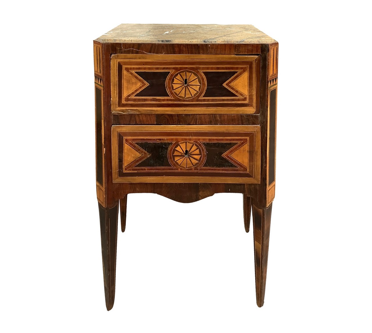 Comodino Luigi XVI in legno di palissandro, acero e noce , XVIII Secolo H cm84x51 profondità 32,5