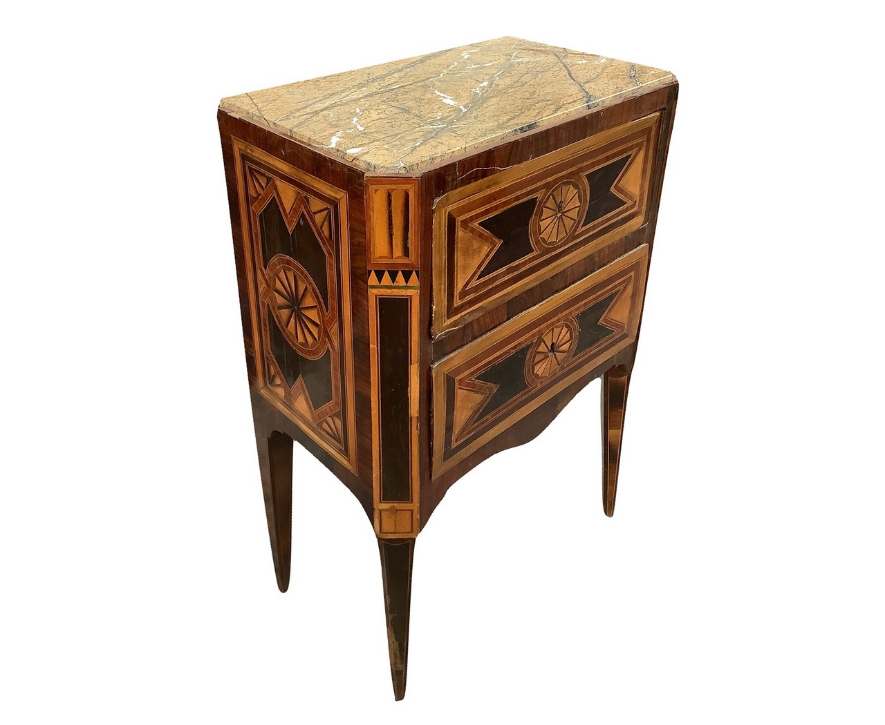 Comodino Luigi XVI in legno di palissandro, acero e noce , XVIII Secolo