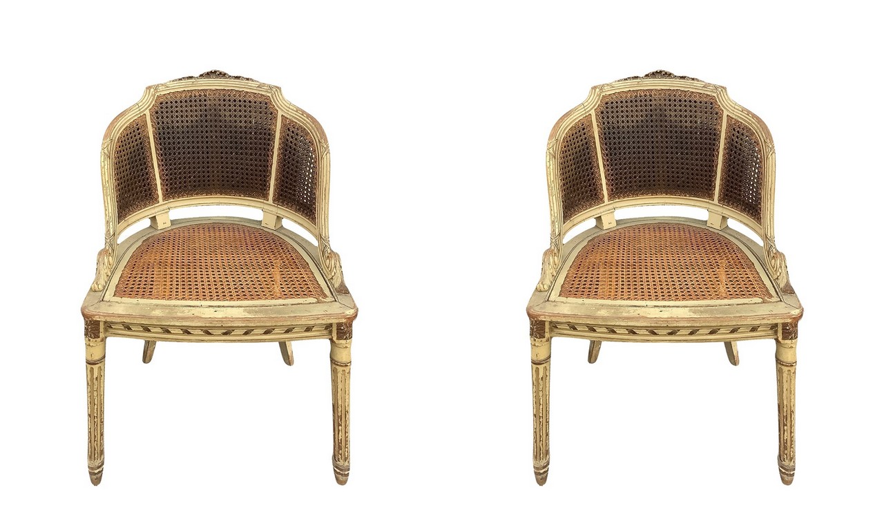 Due poltroncine laccate con spalliera e piano in paglia di Vienna , 19° Secolo