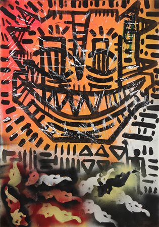 LED (ALESSANDRO APOLLONIO) (n. 1977) Sorrido al mondo. Tecnica mista su tela. Cm 60,00 x 100,00 x 4,00. Al retro firma e titolo.