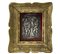 Placca in argento raffigurante i Santi Cosma e Damiano in cornice a vassoio dorato , Fine 18° Secolo h cm 14x10; in cornice cm 23x20 argento