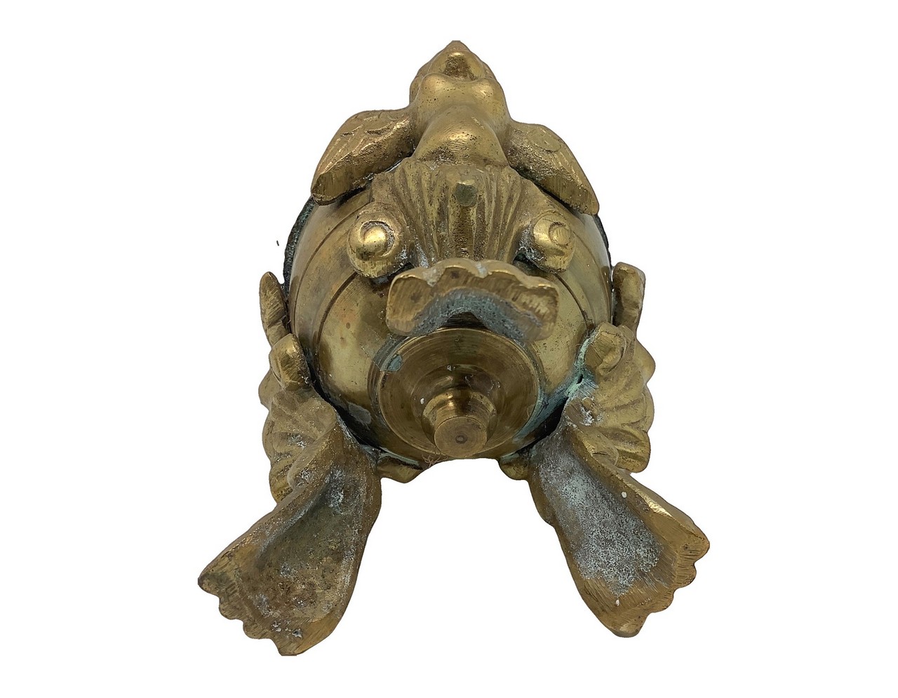 Calamaio in bronzo dorato, con angeli alla base e presa con leone marzocco, 19° Secolo cm. 16 x 9
