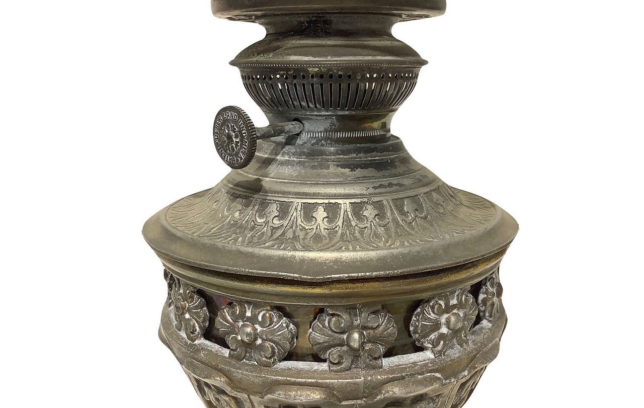 Lume con base di metallo, decorazione di foglie e fiori, Fine 19° Secolo