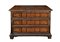 Cassettone in legno di palissandro con intarsi geometrici in legno chiaro sul fronte, 19° Secolo