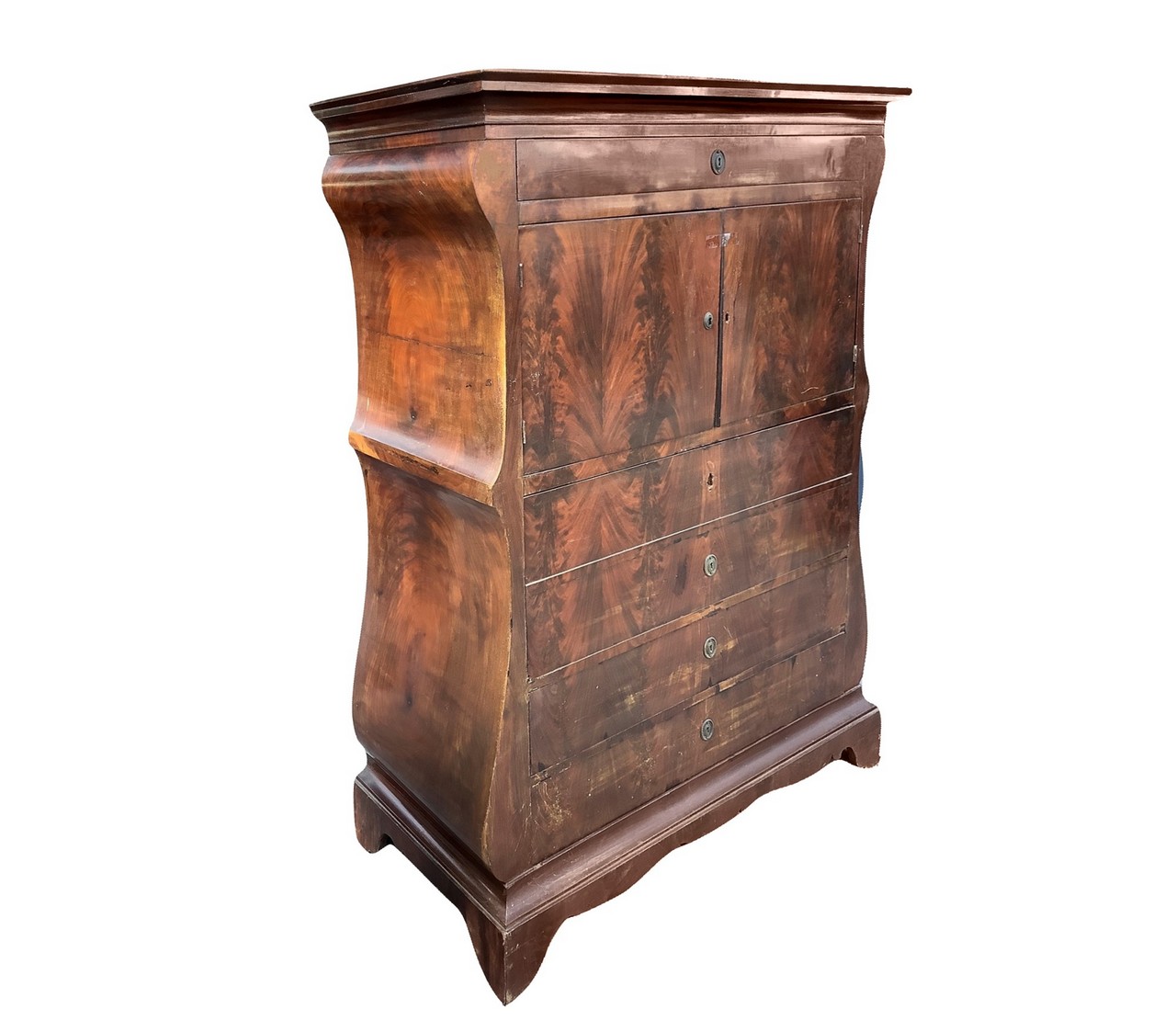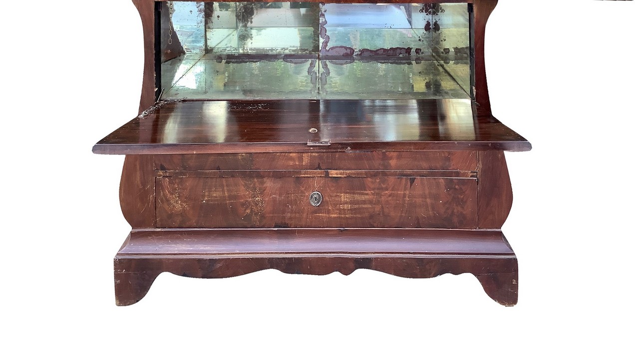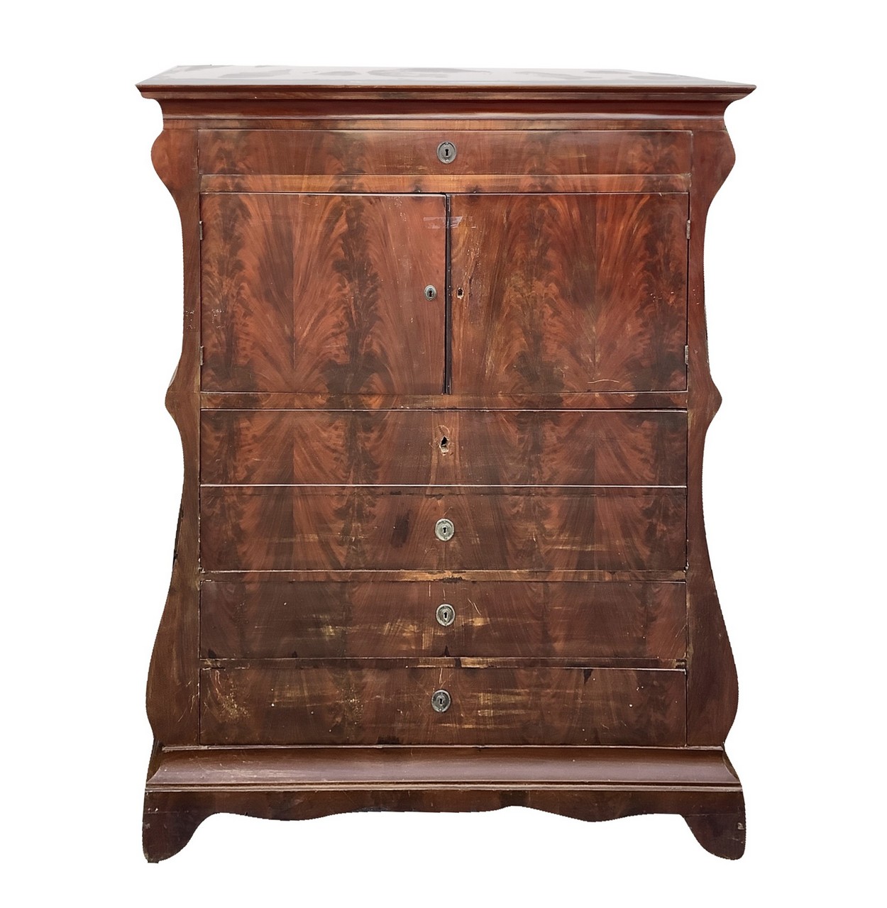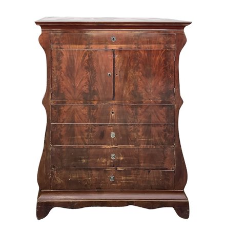 Chiffonier in legno di mogano a chitarra , Inizi 19° Secolo H cm 177x128 Quattro cassetti nell parte bassa ,due sportelli e cassetto nella parte superiore. Sicilia