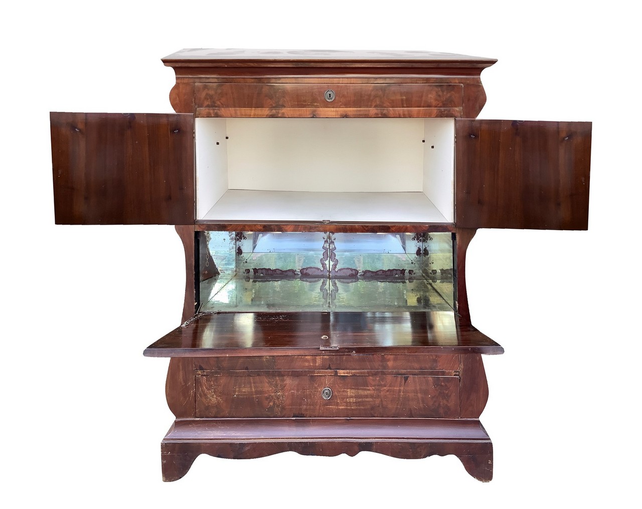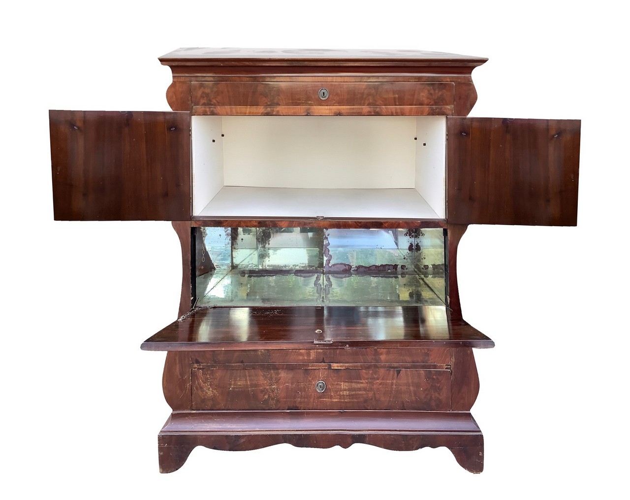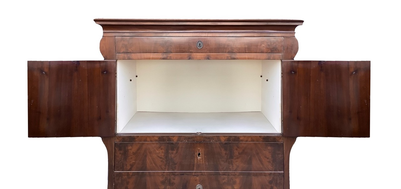Chiffonier in legno di mogano a chitarra , Inizi 19° Secolo H cm 177x128 Quattro cassetti nell parte bassa ,due sportelli e cassetto nella parte superiore. Sicilia