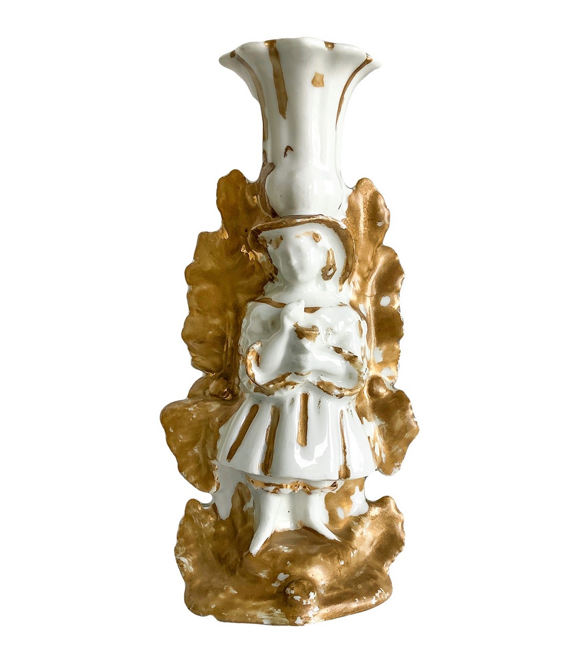 Coppia di candeliere monoforo in porcellana bianca e oro, Inizi 20° Secolo