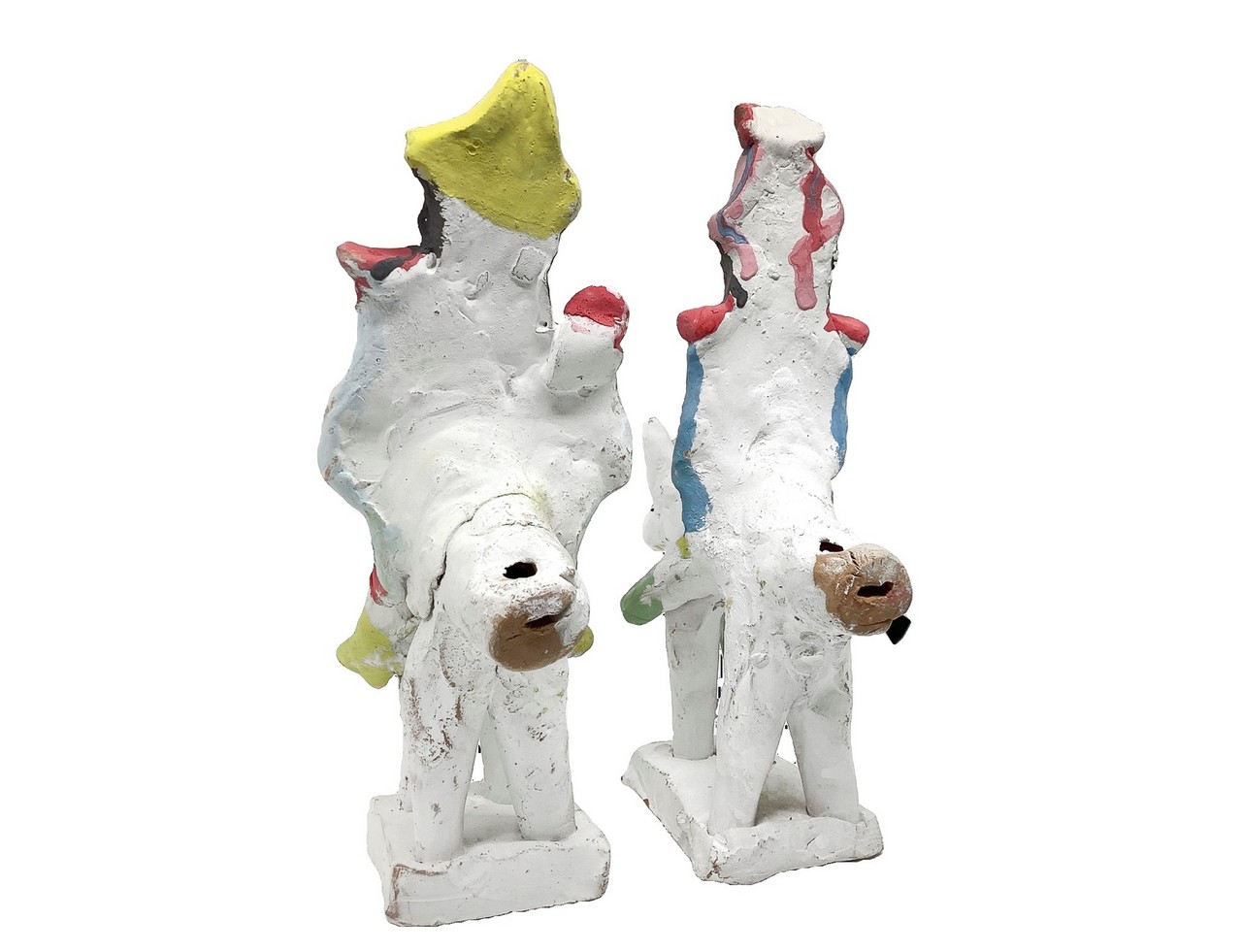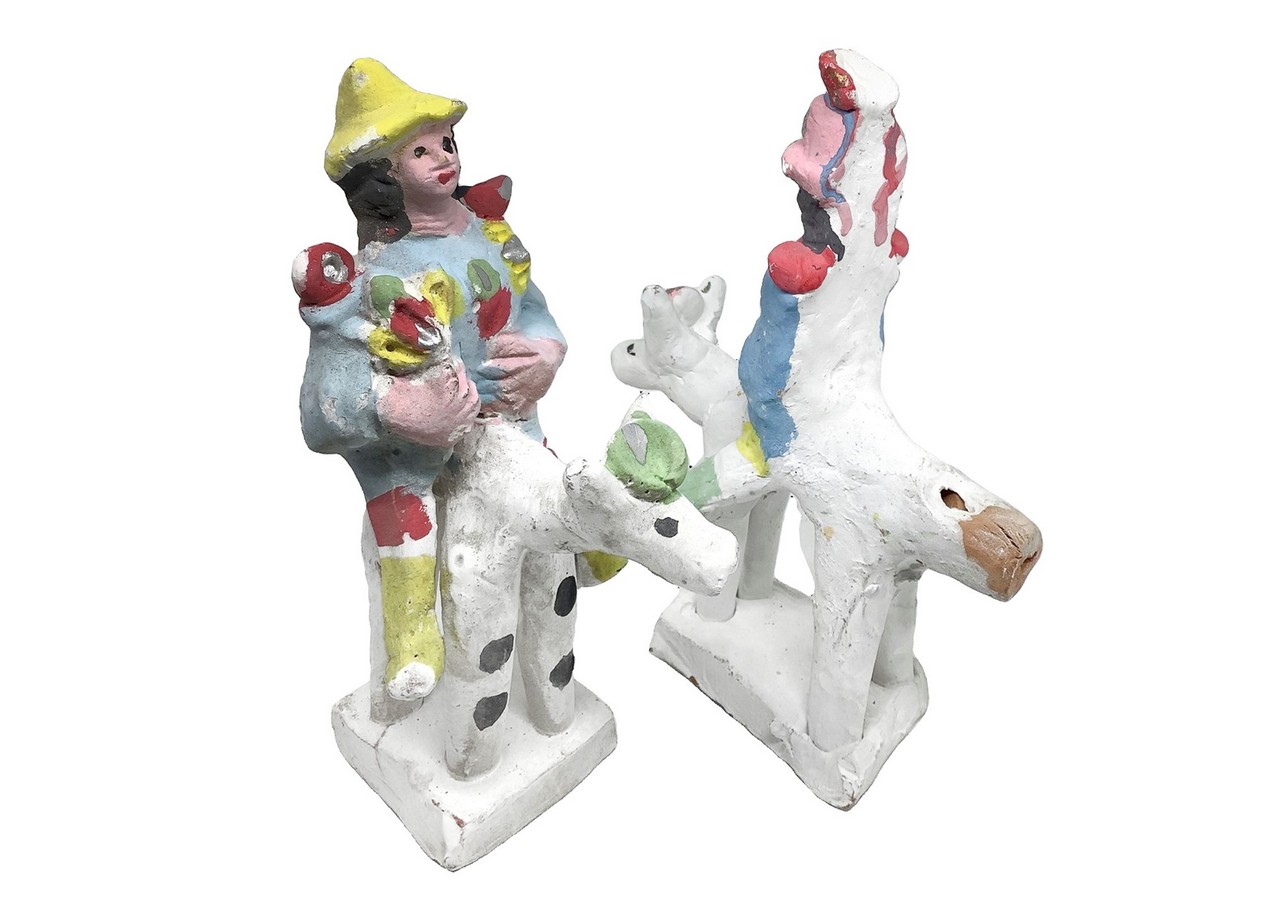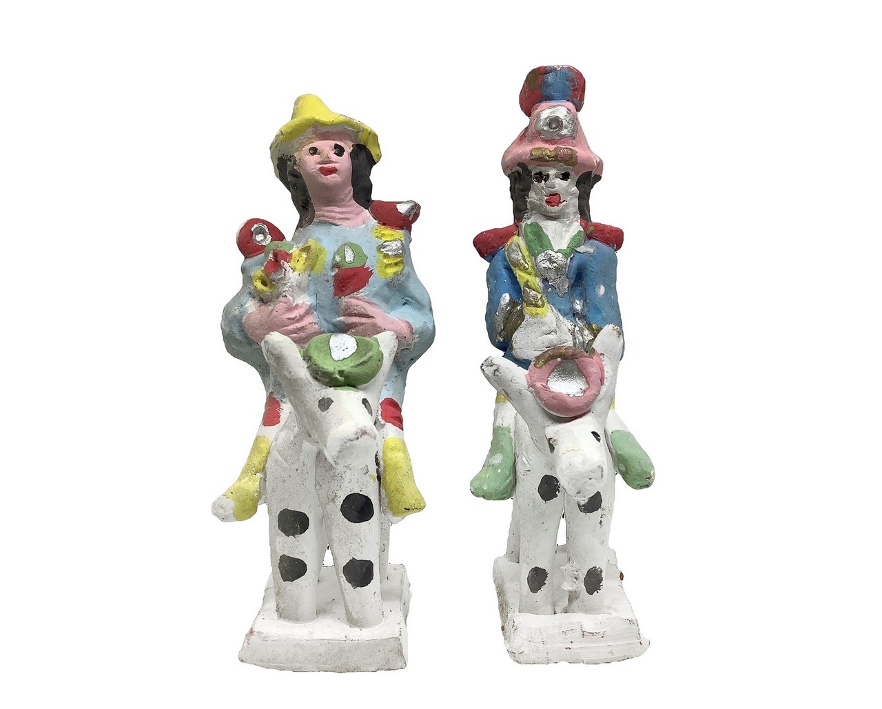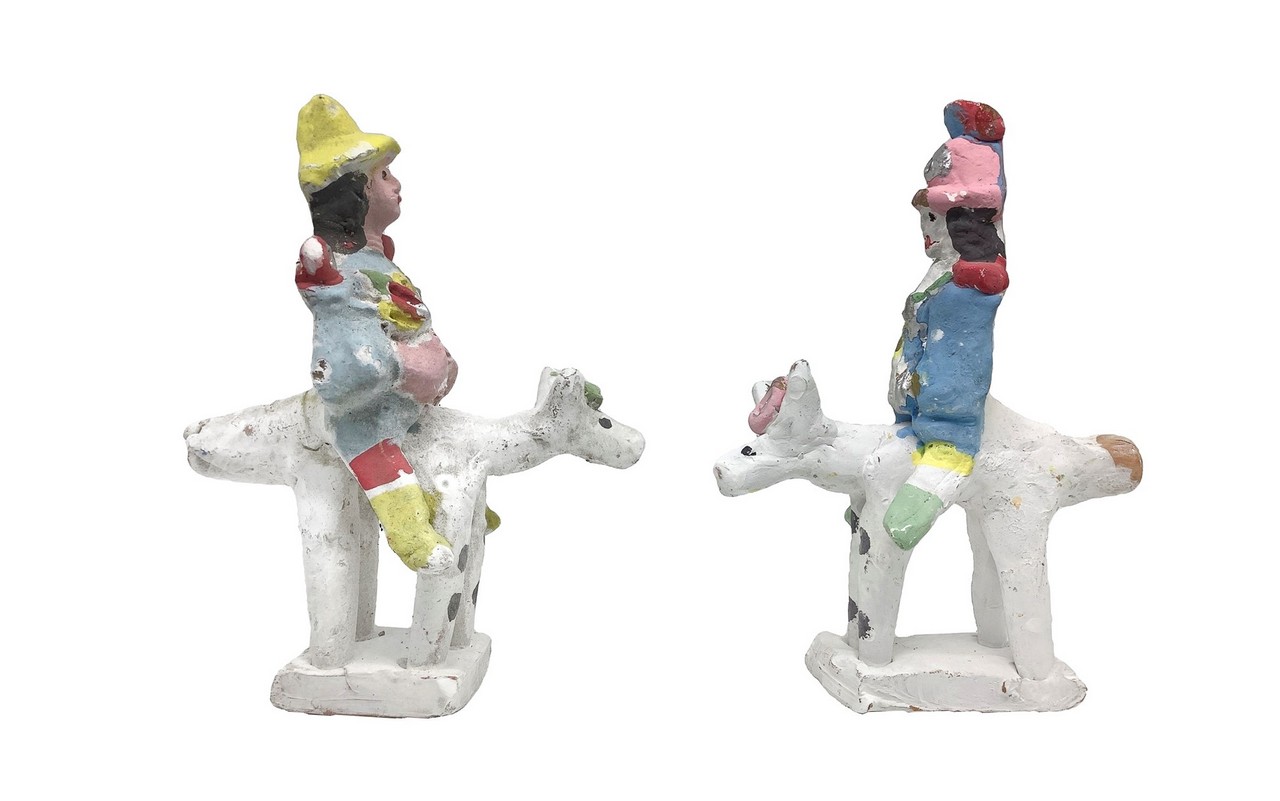 Salvatore Leone - Coppia di fischetti policromi in ceramica di Caltagirone raffiguranti due carabinieri a cavallo