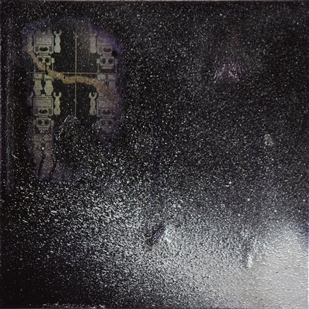 ALIENO (ALESSANDRO MANTOVANI) (n. 1968) Senza titolo. Tecnica mista su tela. Cm 40,00 x 40,00 x 4,00.