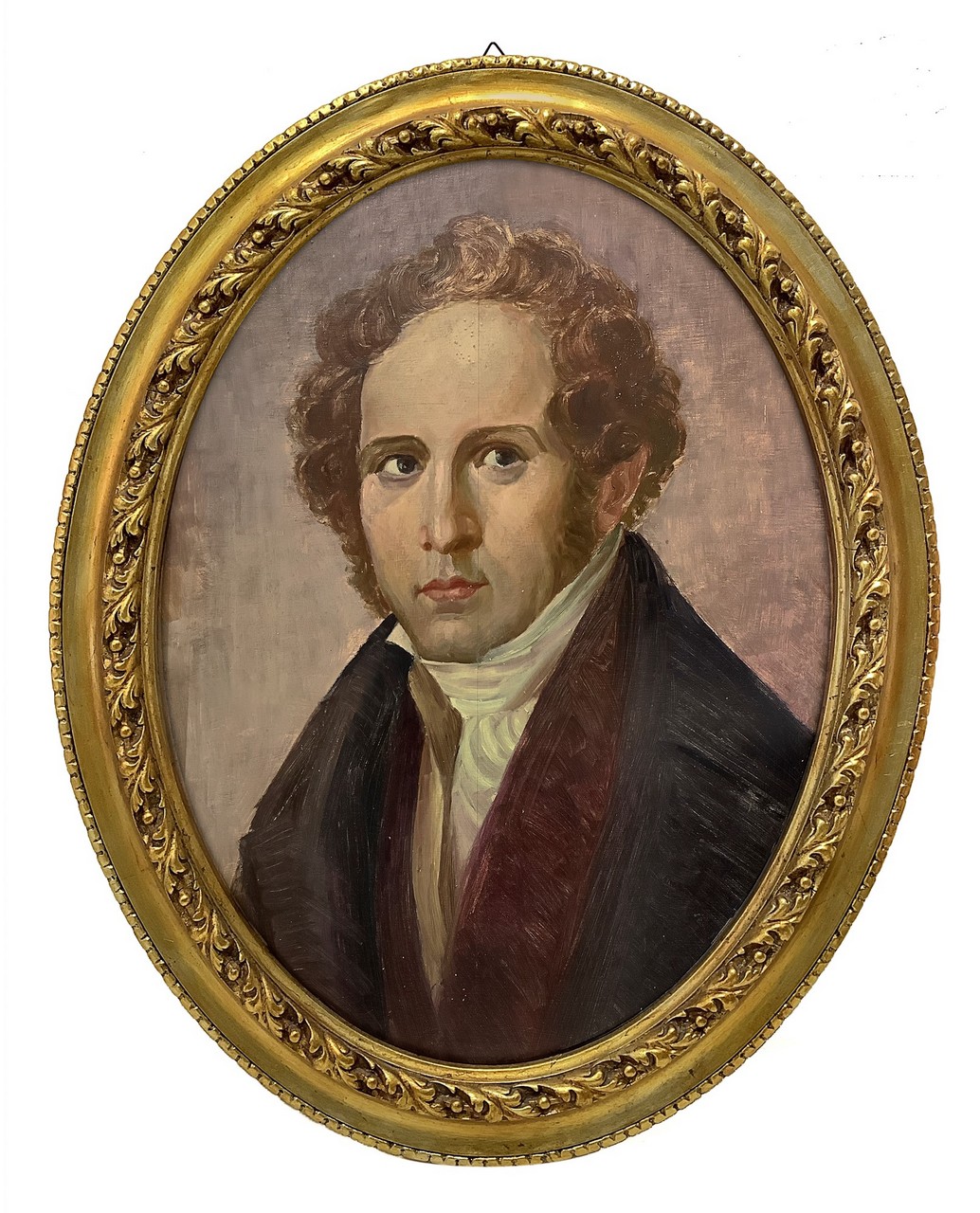 Dipinto ovale con ritratto di Vincenzo Bellini, 19° Secolo h cm 49x36; in cornice h cm 62x49 olio su tavola