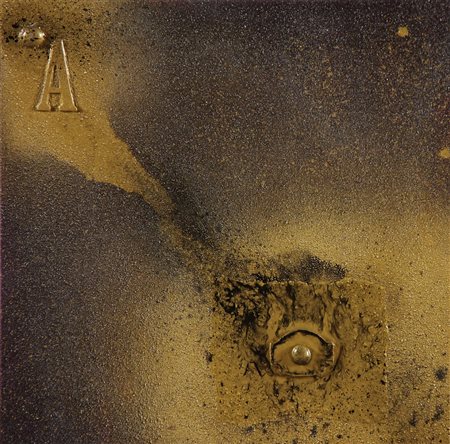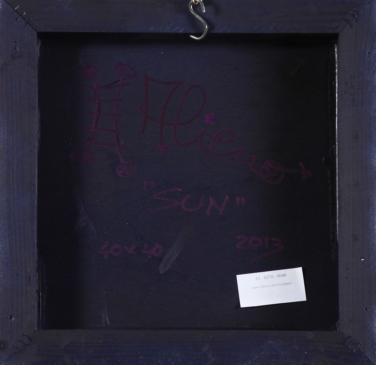 ALIENO (ALESSANDRO MANTOVANI) (n. 1968) Sun. 2013. Tecnica mista su tavola. Cm 40,00 x 40,00 x 4,50. Al retro firma, titolo e data.