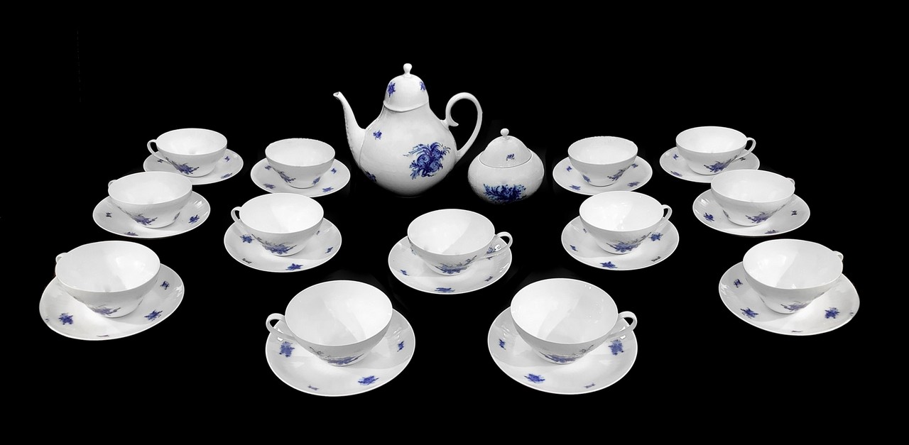 Rosen°al (1879) - Servizio da °e Romance in Blue, 1950s Composto da teiera,zuccheriera, 12 tazze da °e e 12 piattini da °e.