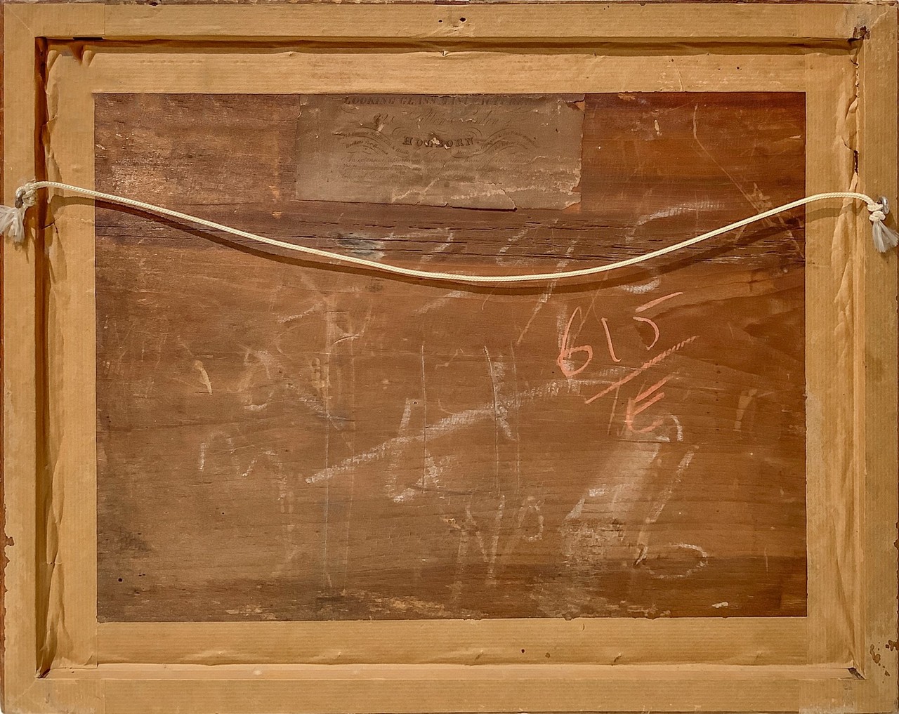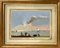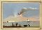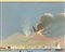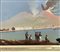 Dipinto raffigurante barche e personaggi con vulcano sullo sfondo, Fine 19° Secolo