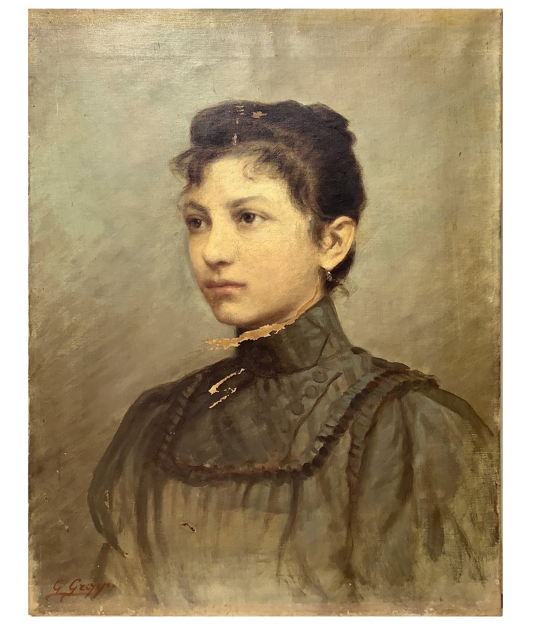Ritratto di donna, Fine 19° Secolo H 70x51 Olio su tela Firmato in basso a sinistra G.Groppo (Da Restaurare)
