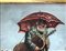 Dipinto raffigurante uomo anziano con ombrello e violoncello su paesaggio innevato
