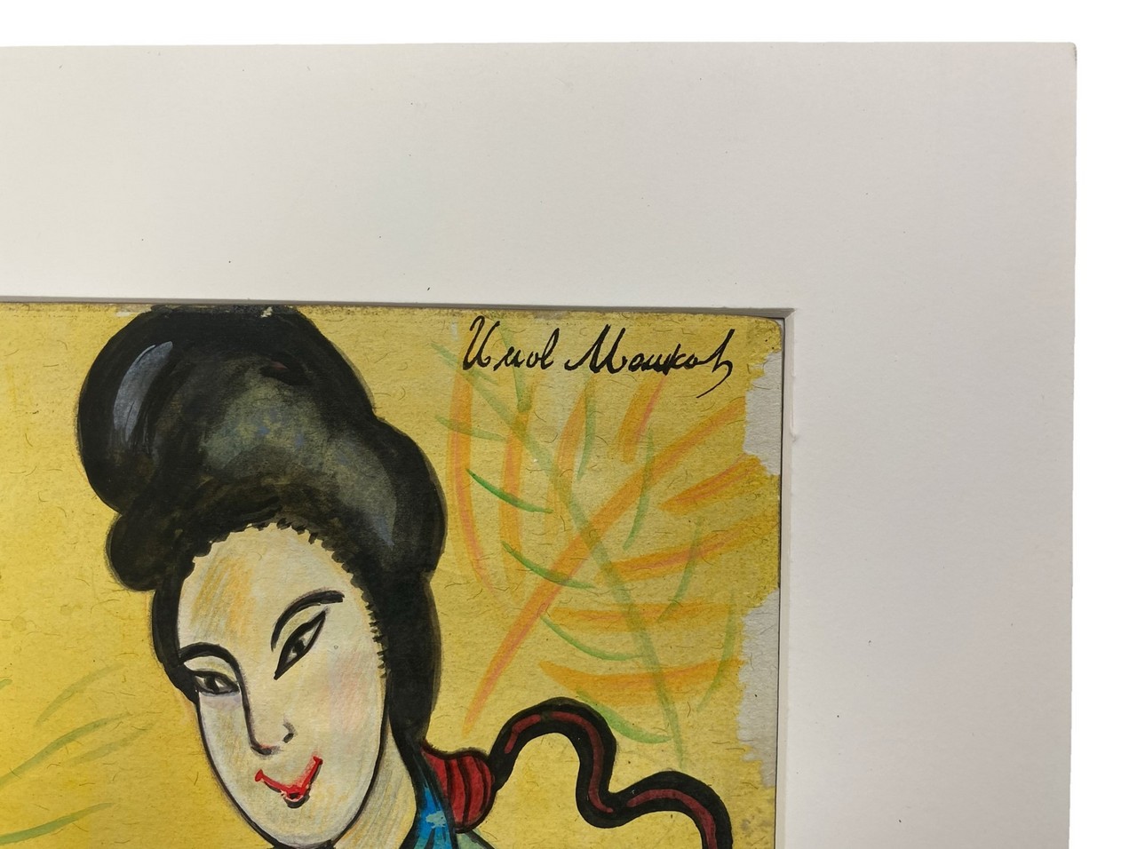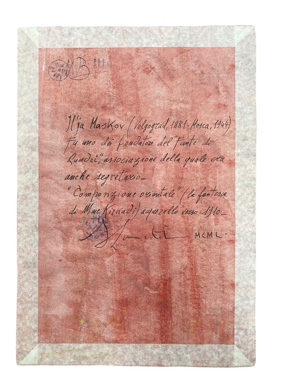 Il'ya Maskov (Volgograd 1881-Mosca 1944) - Dipinto "Composizione orientale" raffigurante donna orientale con gatto, First half of °e 20° Secolo cm. 31 x 22 in passepartout cm. 41 x 31.5 Acquarello su carta