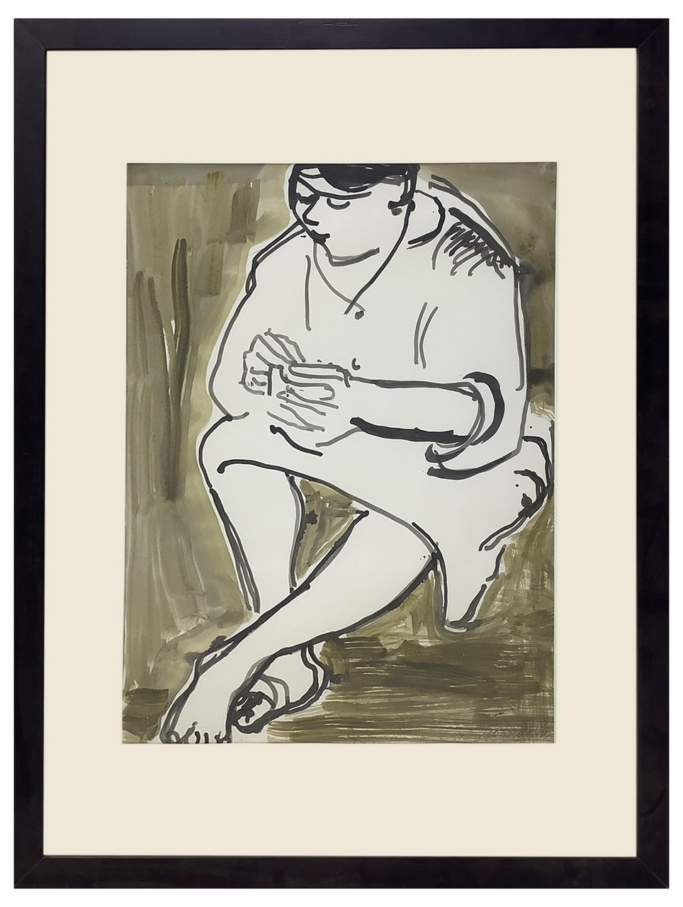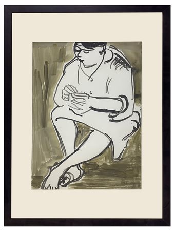 Maria Leonardi Pennisi (Acireale) - Donna seduta in cornice h cm 81x61; senza h cm 55x40 guache