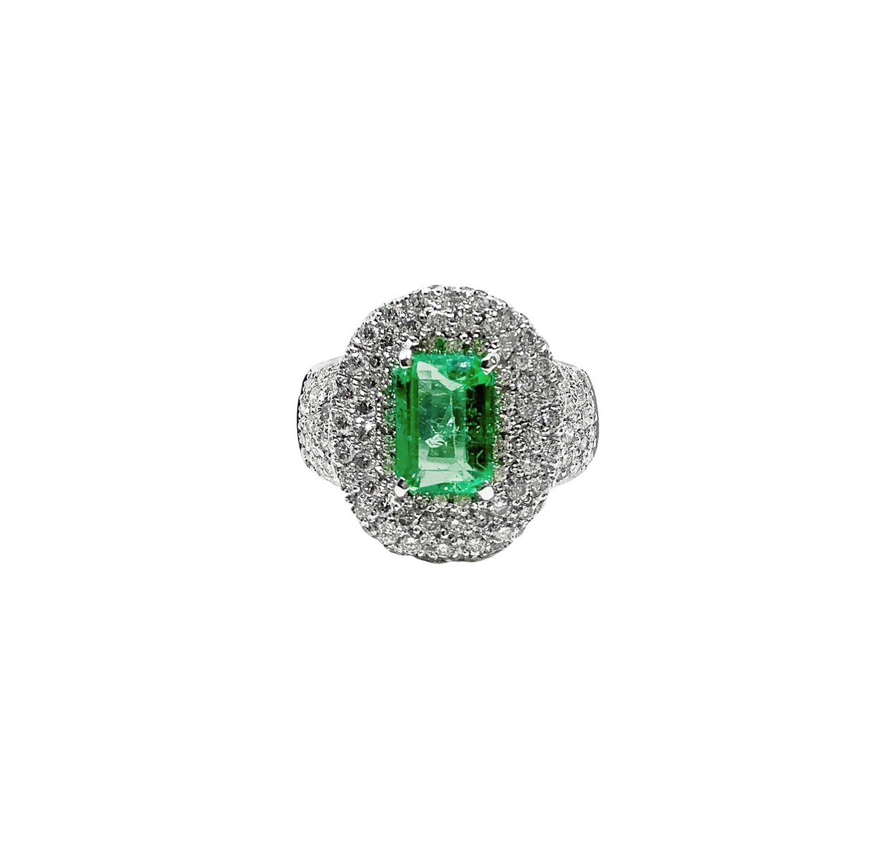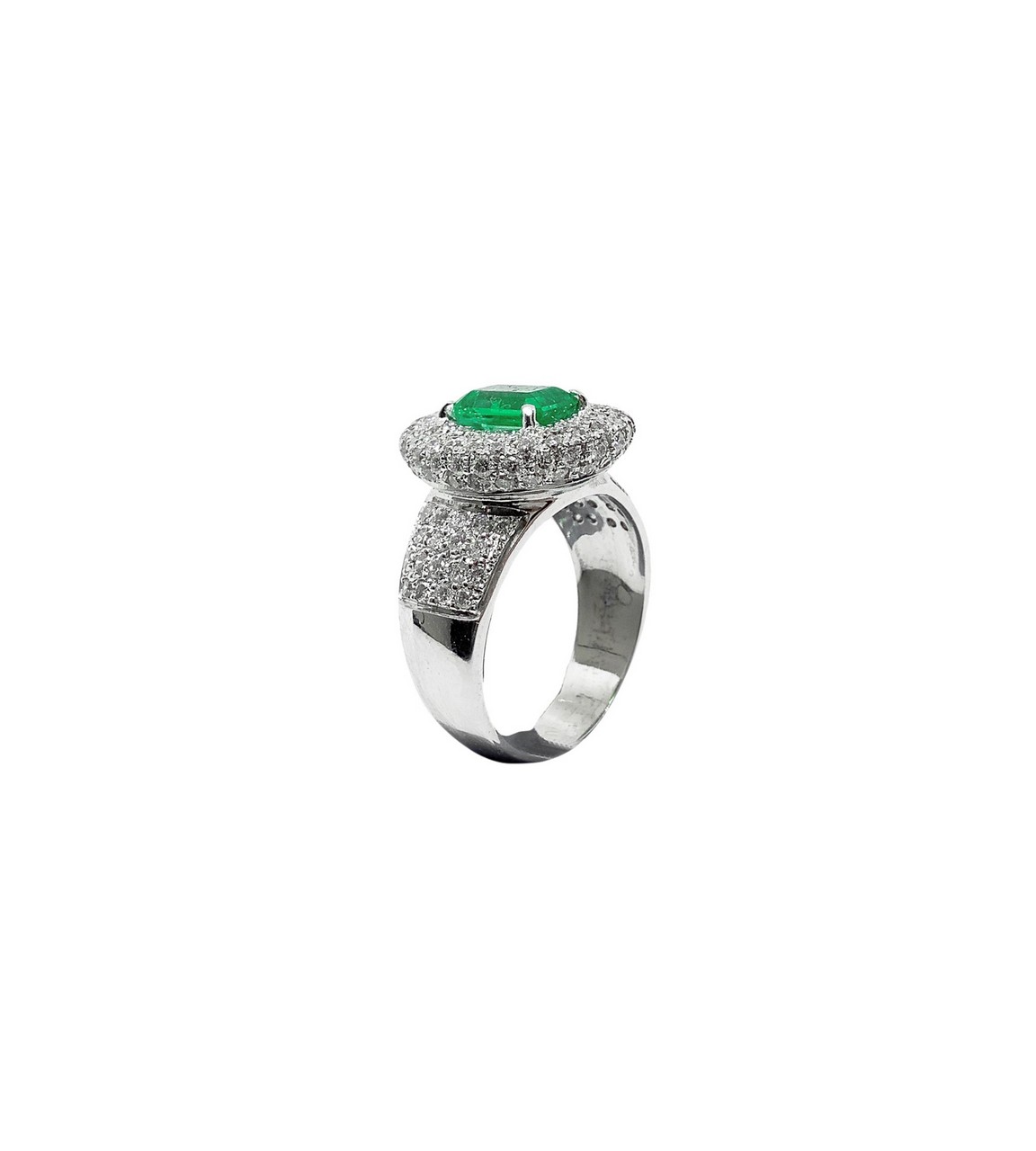 Anello in oro bianco 750 con smerlando 1.10 Kt e diamanti taglio brillanti 1.50 Kt