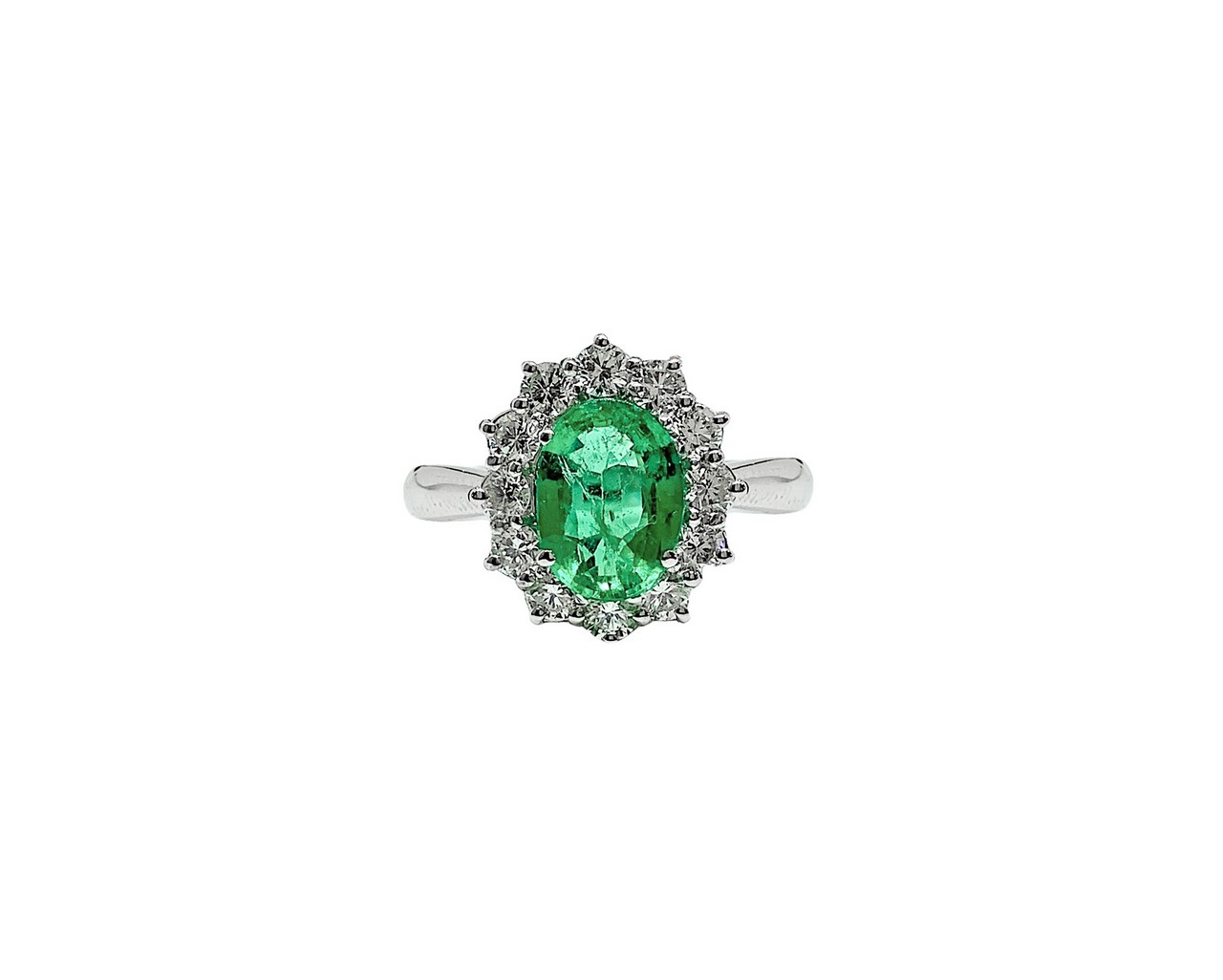 Anello con smeraldo 1,48 Kt e diamanti taglio brillanti 0,85 kt