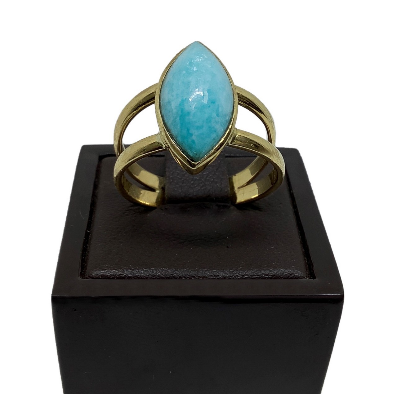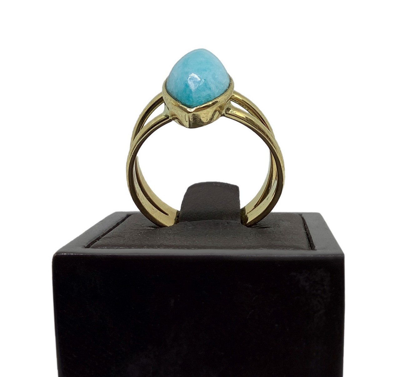 Anello oro 18 carati con amazzonite taglio a spoletta