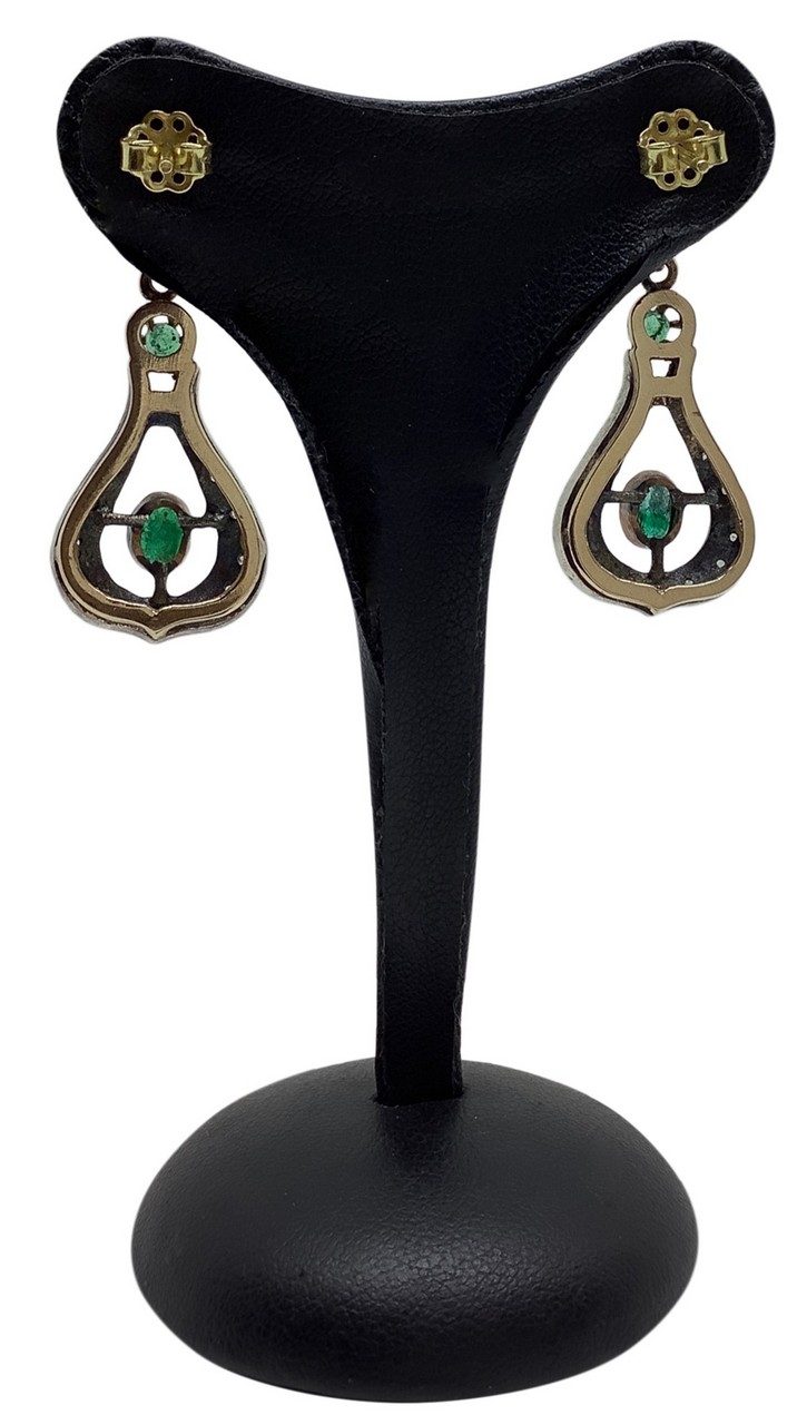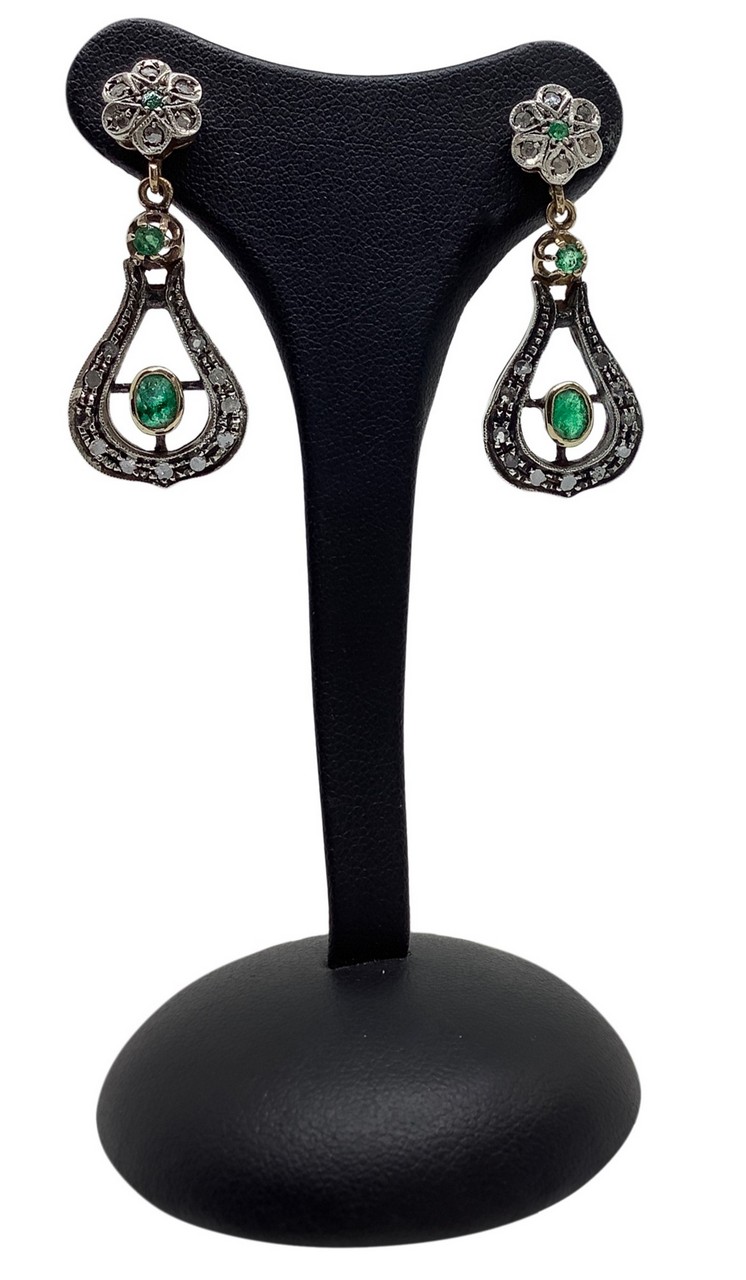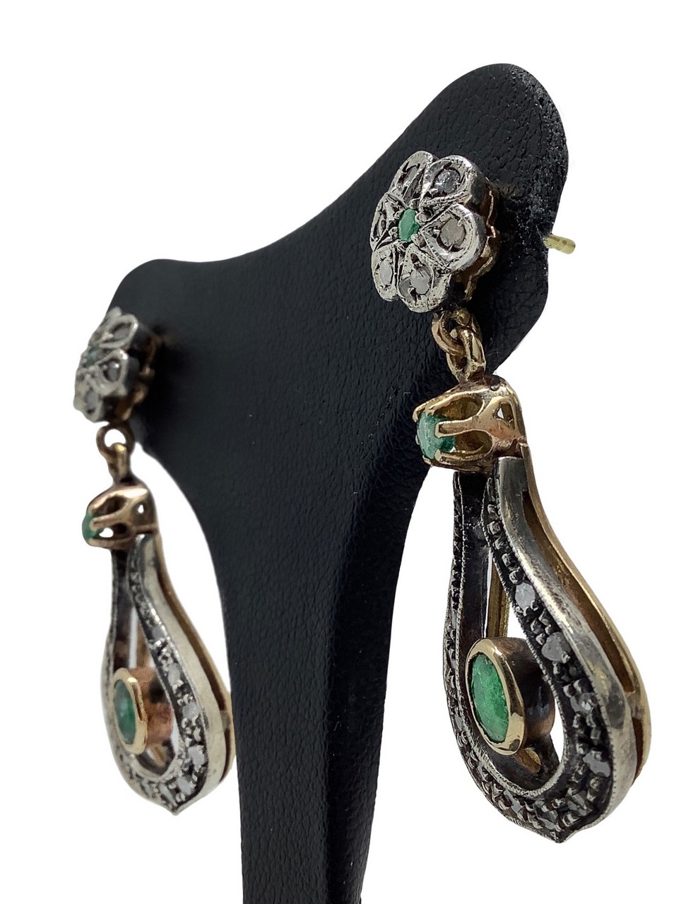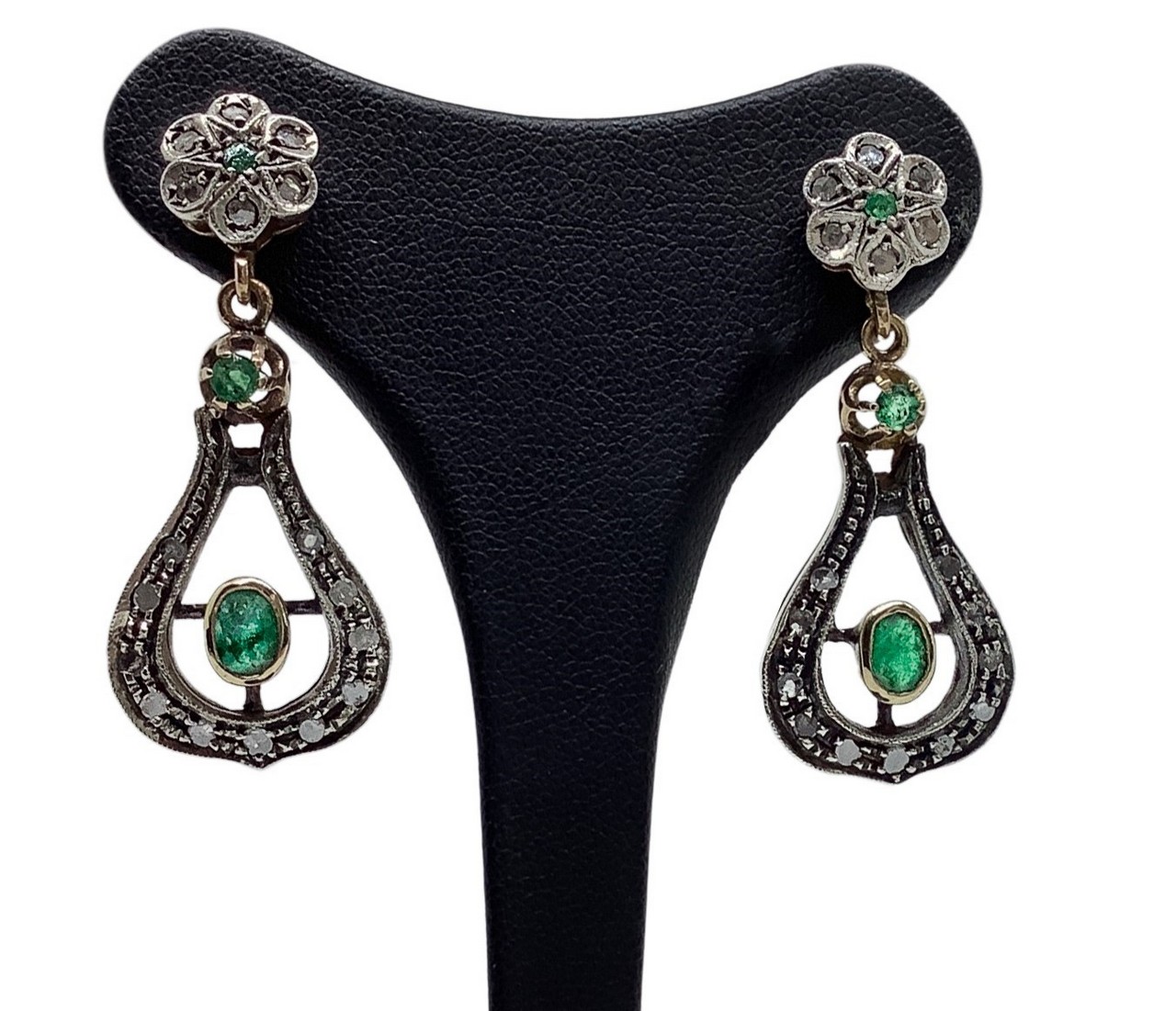 Orecchini pendenti con smeraldi e diamanti in oro 18 carati e argento gr. 13