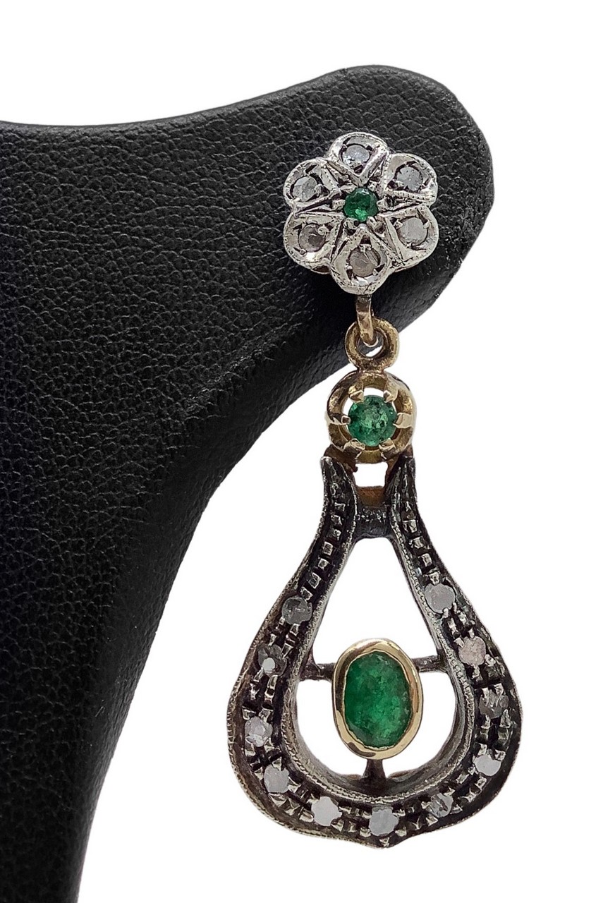 Lotto 360 | Orecchini pendenti con smeraldi e diamanti in oro 18 carati e argento