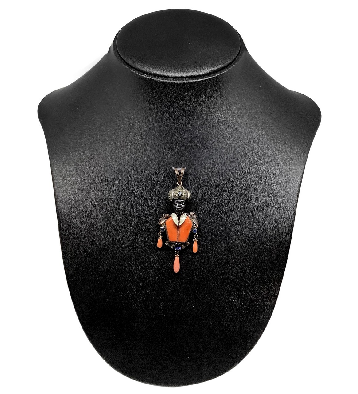 Ciondolo a forma di moro in oro basso titolo, argento e corallo