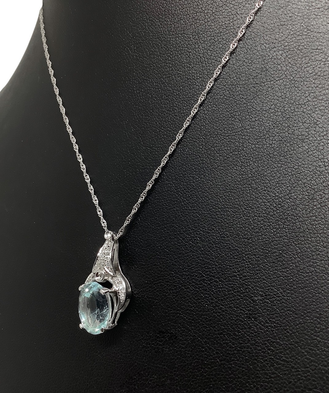 Girocollo in oro bianco 18 carati con topazio azzurro (2,5 carati) gr. 5,6, lunghezza 23 cm brillanti a 0,15