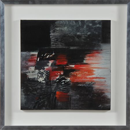 AZZOLINI MAURIZIO (n. 1933) Senza titolo. Tecnica mista su carta incollata su tavola. Cm 39,00 x 39,00. Firma in basso a destra. In allegato all'opera opuscolo relativo alla carriera dell'artista. Cornice presente