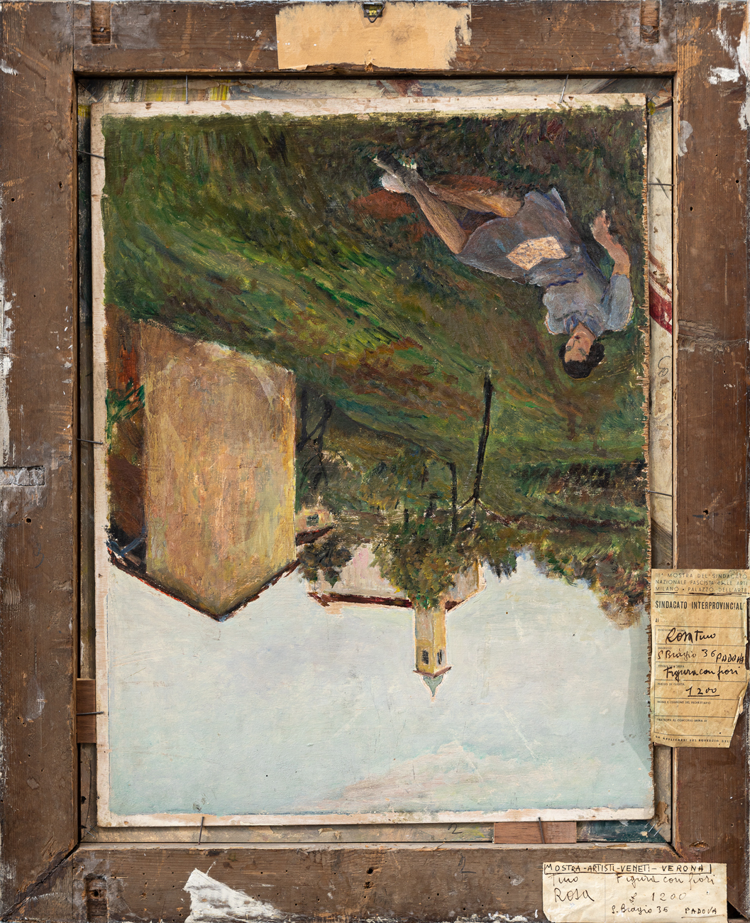 Etichetta della III mostra del Sindacato Nazionale Fascista delle Arti di Milano al retro