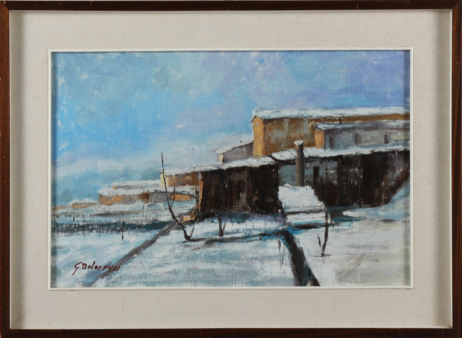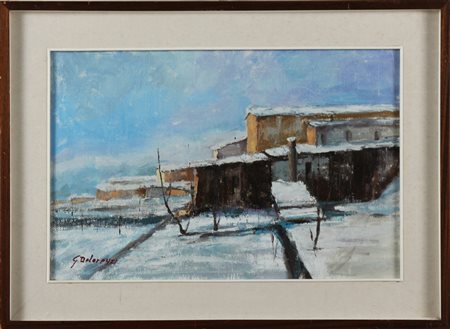 DE LORENZI GINO (n. 1939) Senza titolo. Olio su tela . Cm 60,00 x 40,00. Firma in basso a sinistra. Al retro cartiglio descrittivo dell'opera dell'artista. . Cornice presente