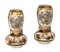 Coppia di piccoli vasi in ceramica, Kyoto Satsuma, Giappone con parte superiore oblunga su sfera schiacciata, decorati da composizioni floreali e scene di genere su fondo crema e dorato , altezza cm 12