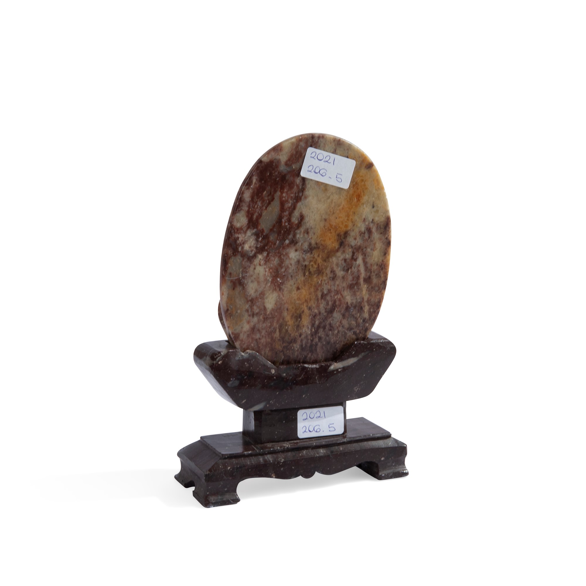Intaglio in pietra dura, Cina, inizi del XX secolo di forma ovale con ricca ornamentazione floreale in altorilievo; sostegno in pietra con decorazione incisa, cm 13x9,5 - l'insieme: cm 18,5x12x4,5