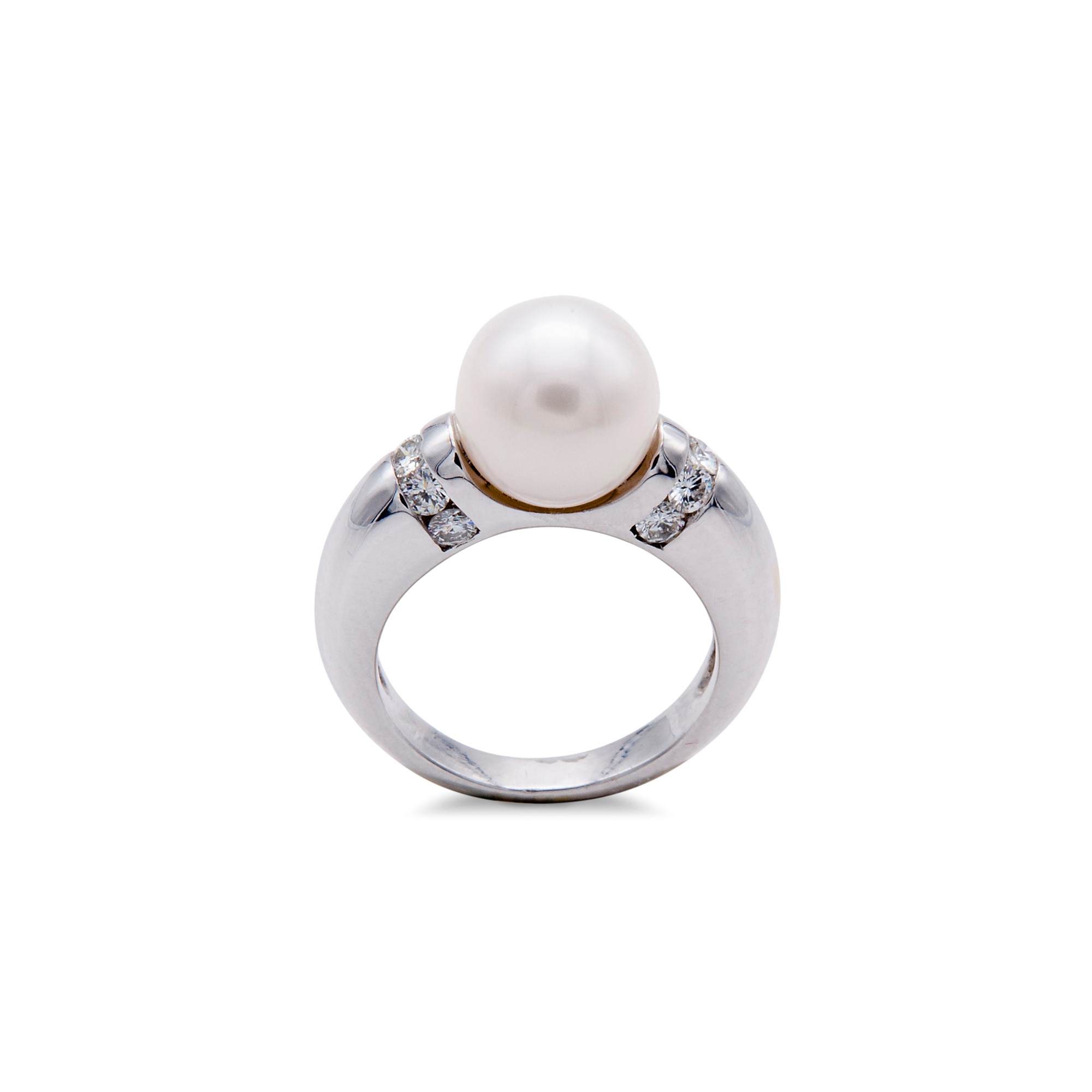 Oro bianco 750/000, perla da coltivazione in acqua salata mm 10. Peso complessivo gr 9,80.
