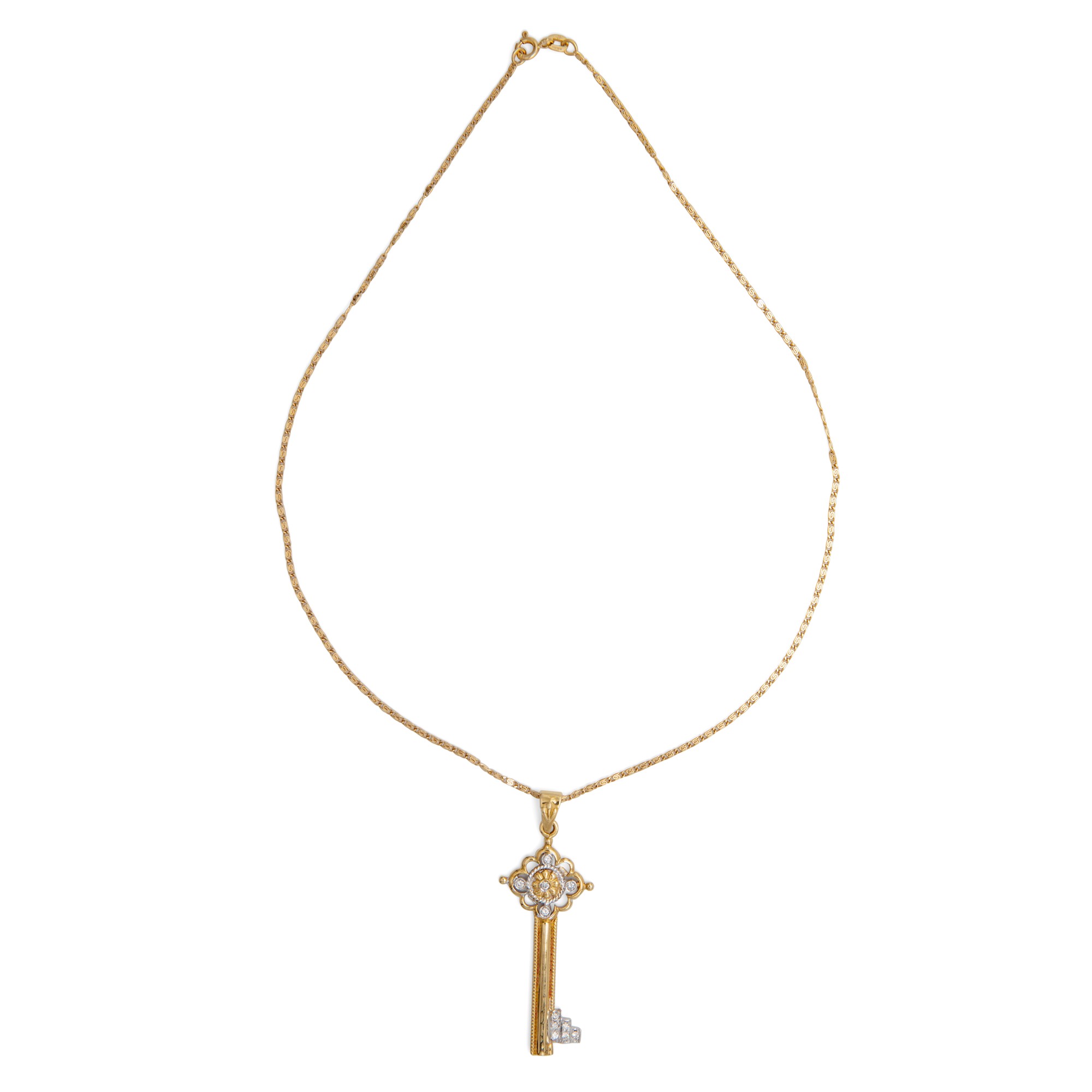 Oro giallo e bianco 750/000, brillanti, peso complessivo gr 9,50, firmata Dinacci.
