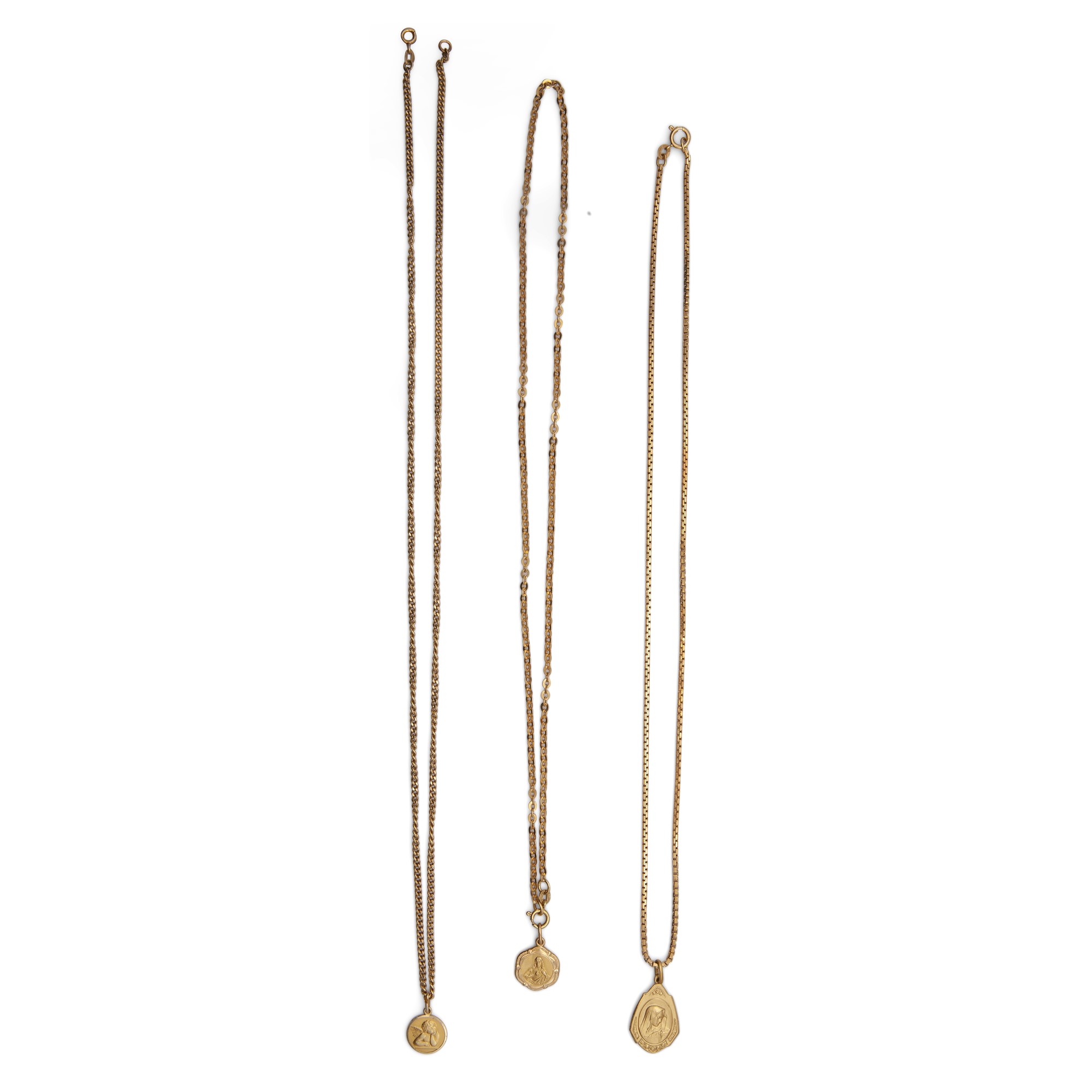 Lotto di tre catene con pendenti sacri in oro