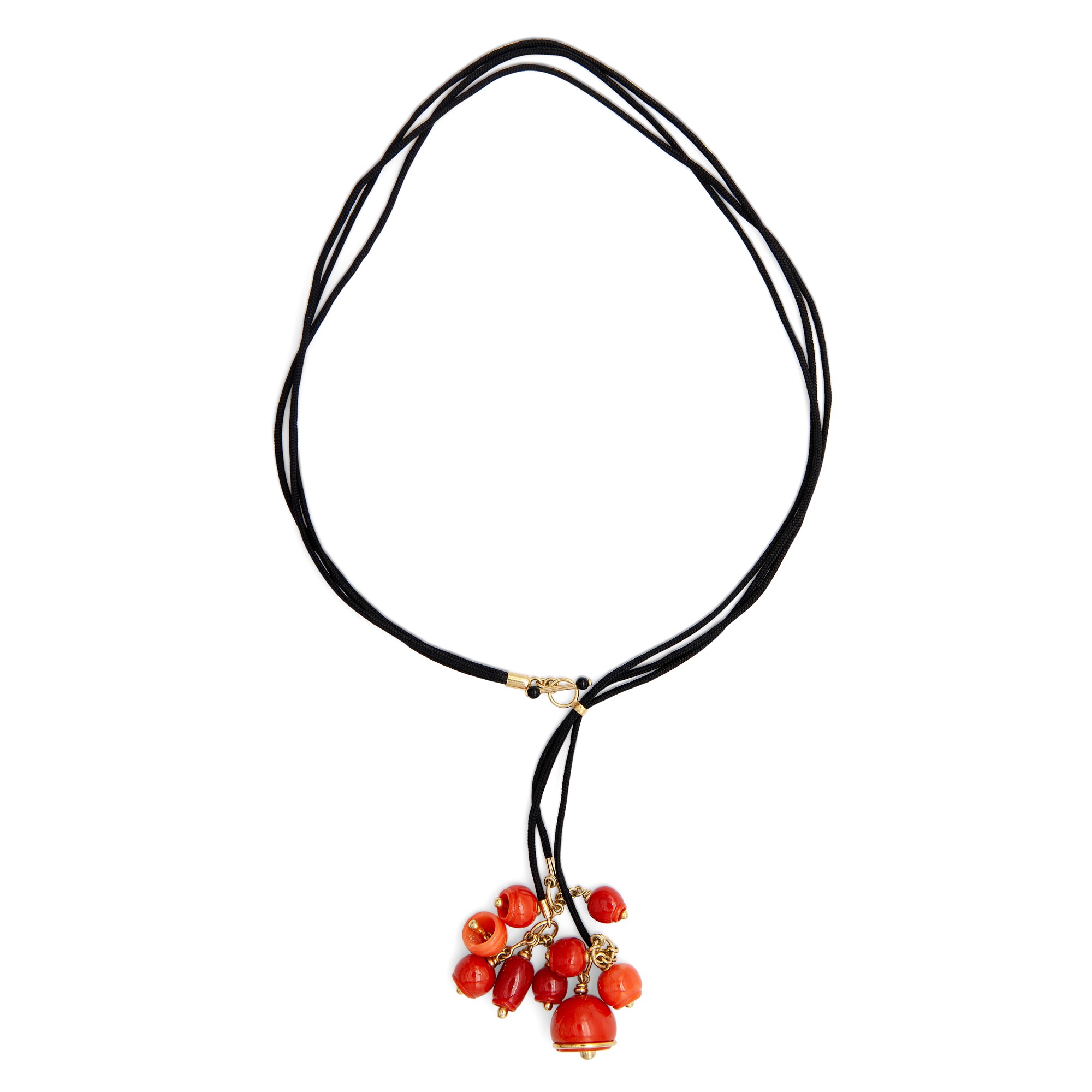 Oro 750/000, corallo rosso, laccio in seta.