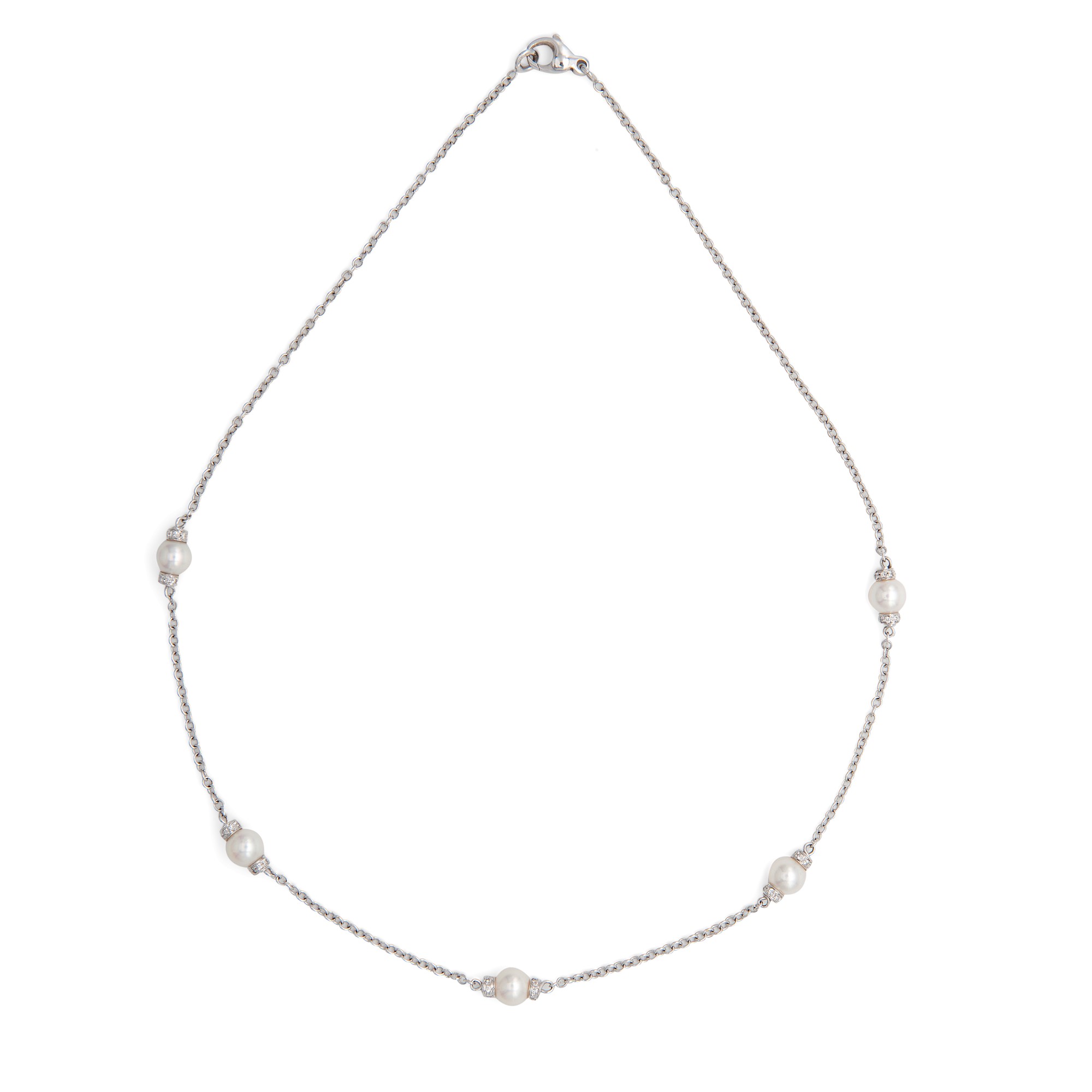 Oro bianco 750/000, perle da coltivazione in acqua marina mm 6 e brillanti. Peso complessivo gr 6,4.