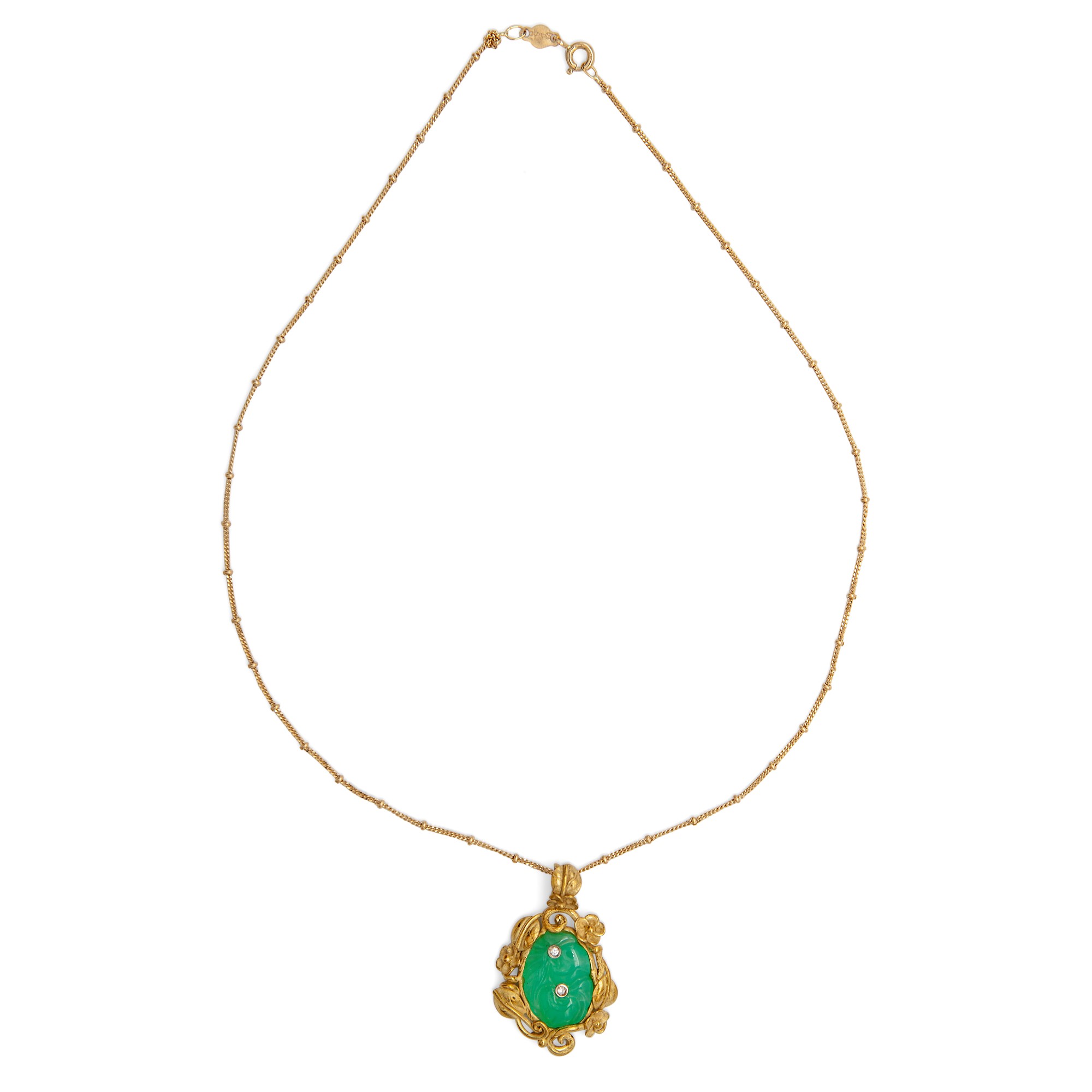 Lotto 197 | Collana con pendente in oro oro giallo, giada e brillanti
