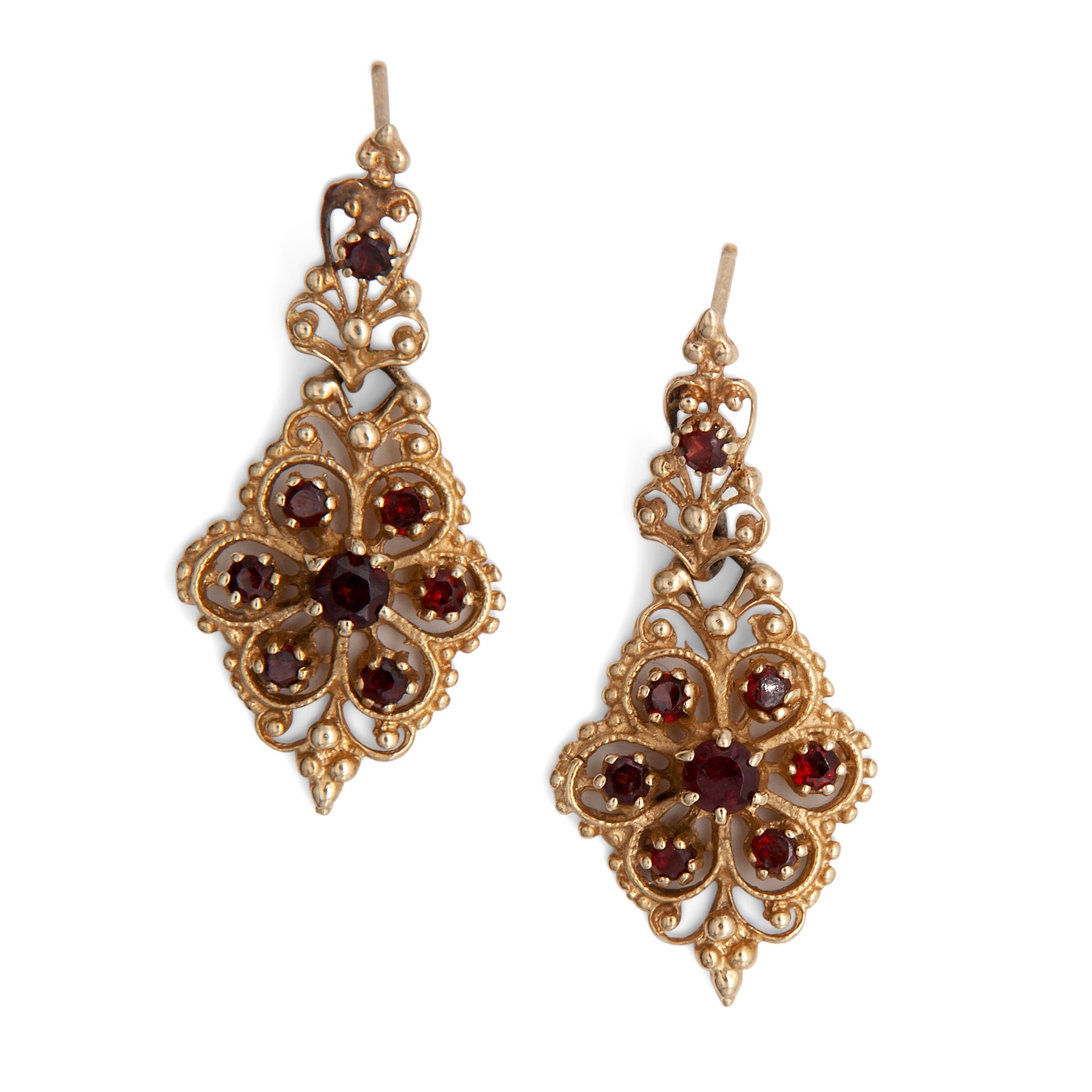 Lotto 200 | Coppia di orecchini antichi in oro e granati