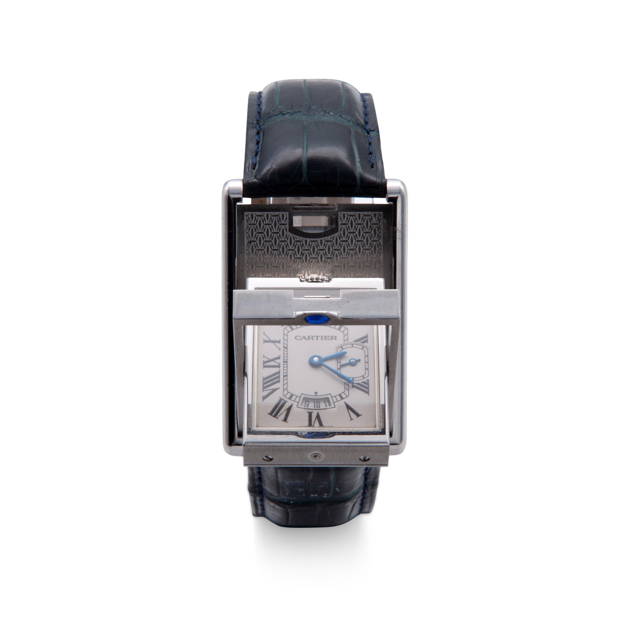 Orologio in acciaio, Cartier, tank basculante XL, custodia e documentazione originale.