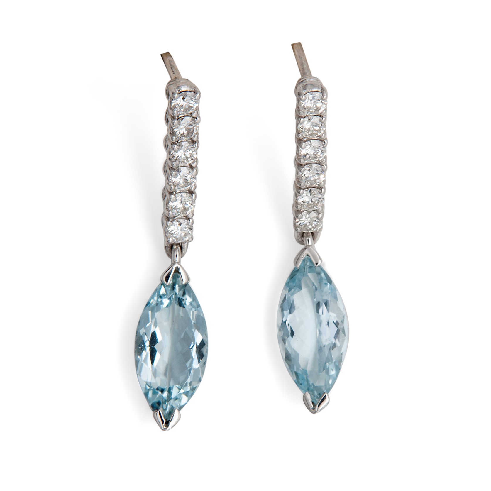 Oro bianco 750/000, brillanti ct.0,50 ca.acquamarine ct. 7 ca. peso complessivo gr 5,50.