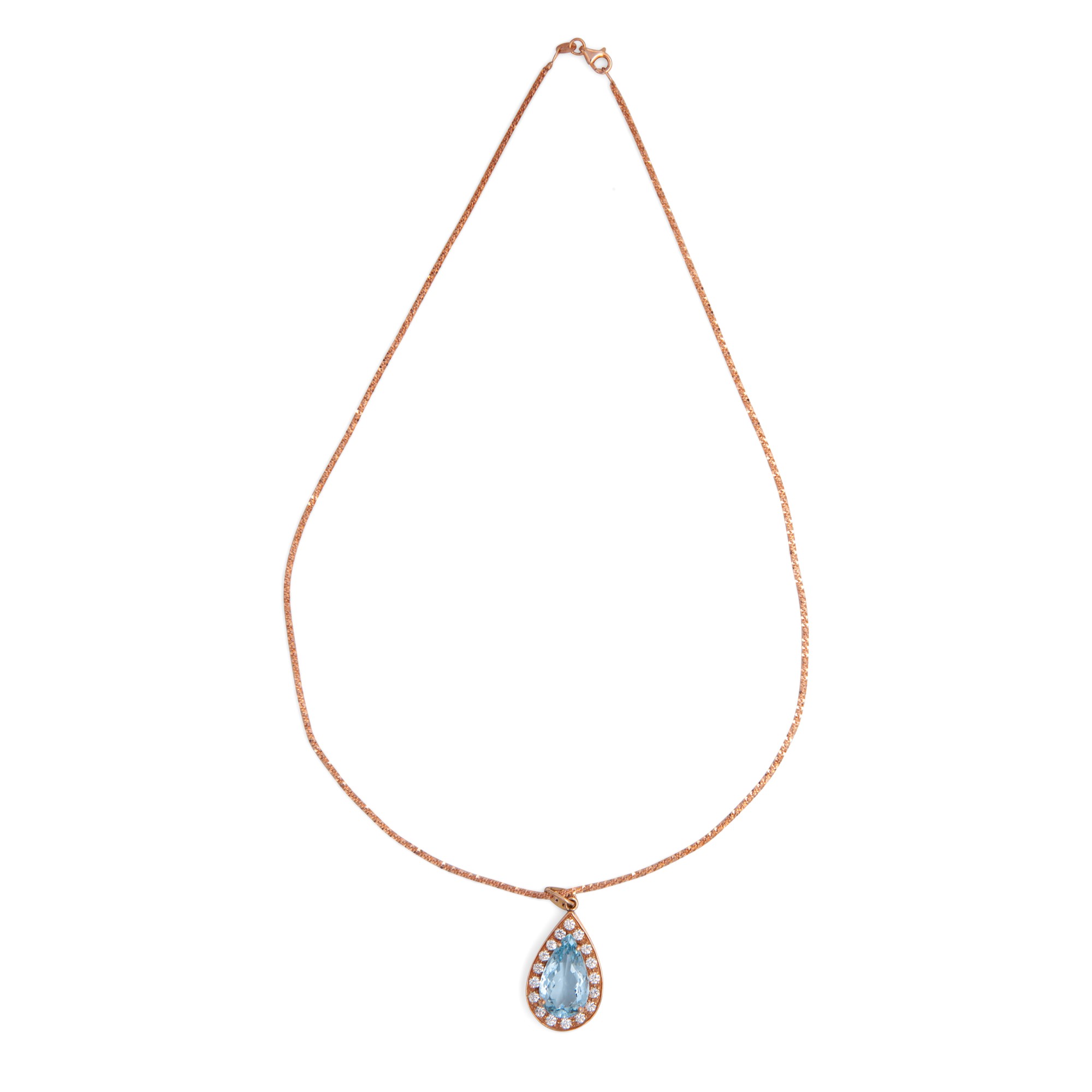 Oro rosa 750/000, acquamarina ct. 8, brillanti ct. 0,55 ca.