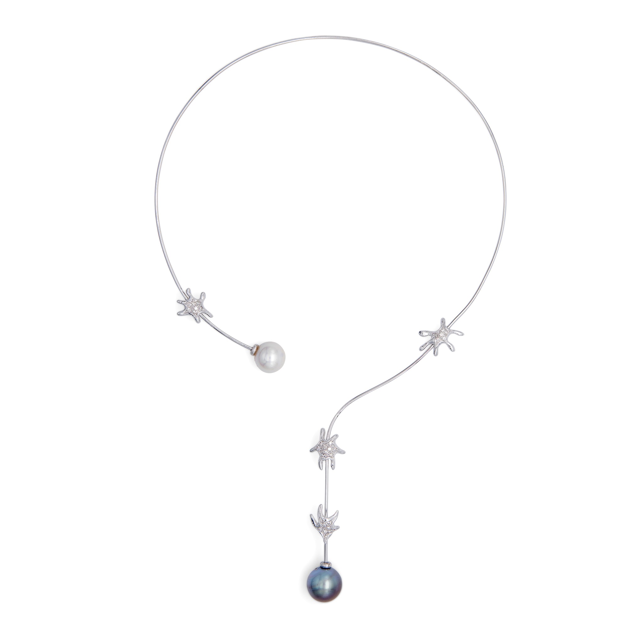 Collana semirigida in oro bianco,brillanti e perle south sea