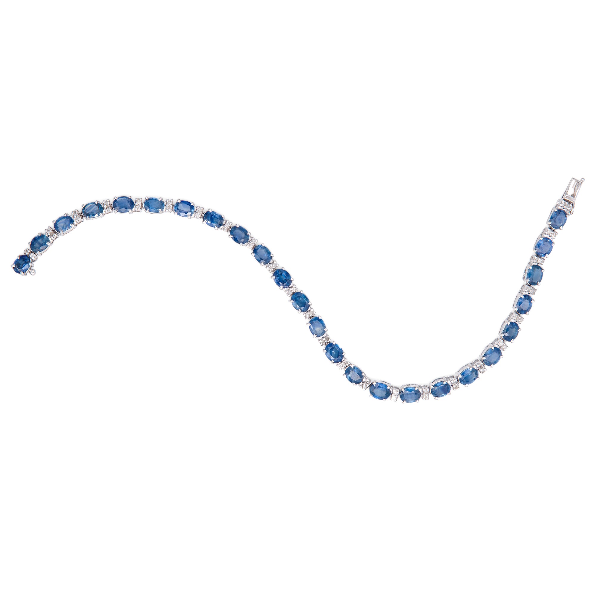 Oro bianco 750/000, zaffiri in taglio ovale ct. 7 ca e brillanti.