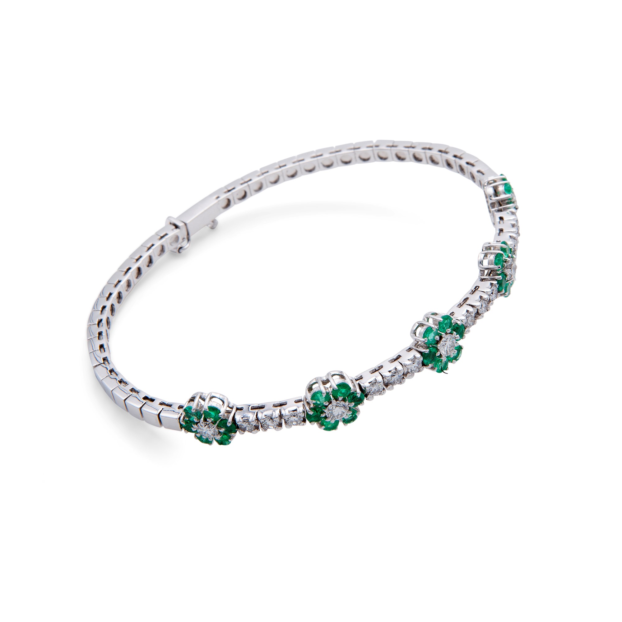 Bracciale rigido in oro bianco, brillanti e smeraldi